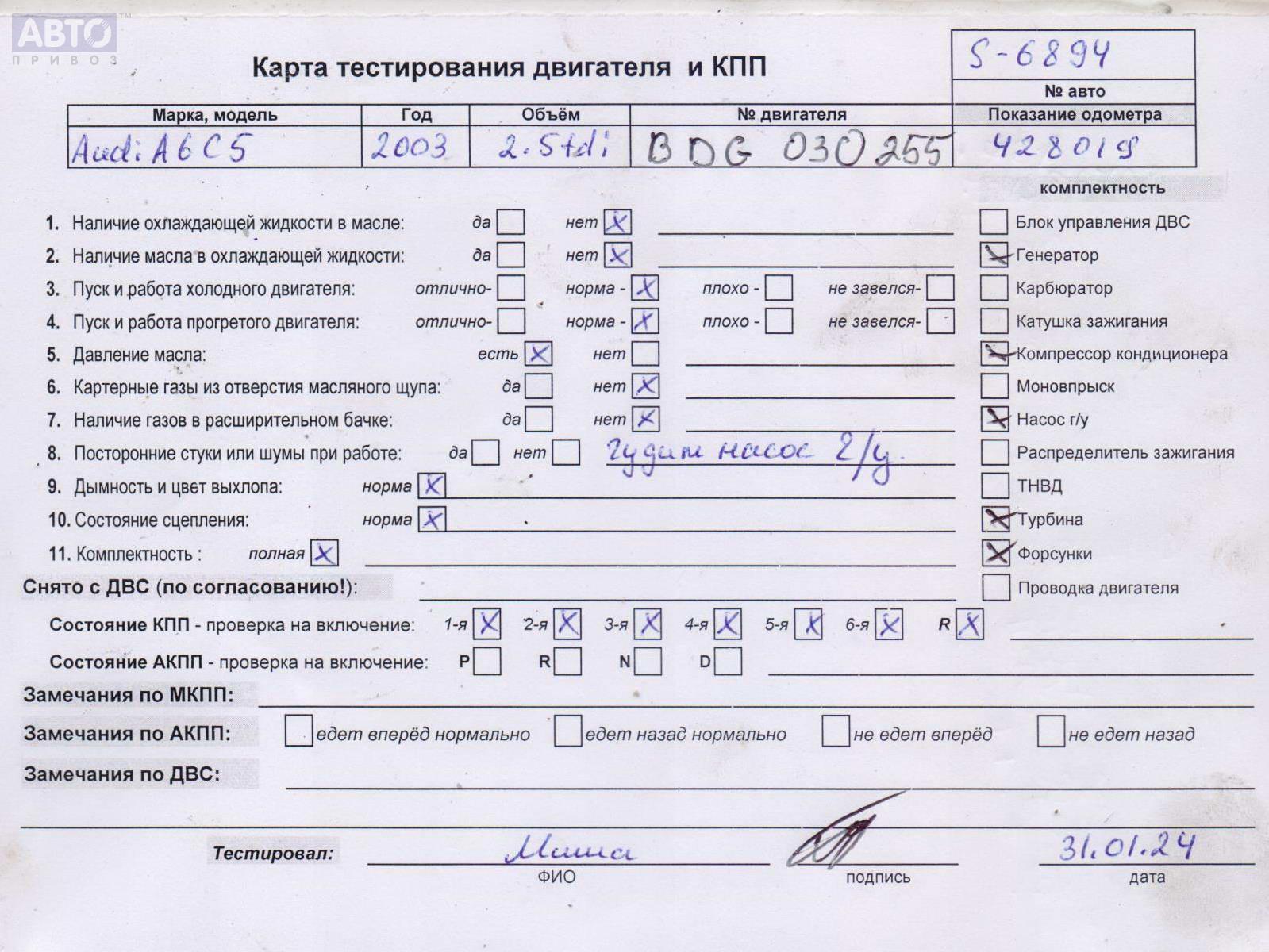 | Автомобиль / VIN: | S6894 WAUZZZ4B74N073482 |