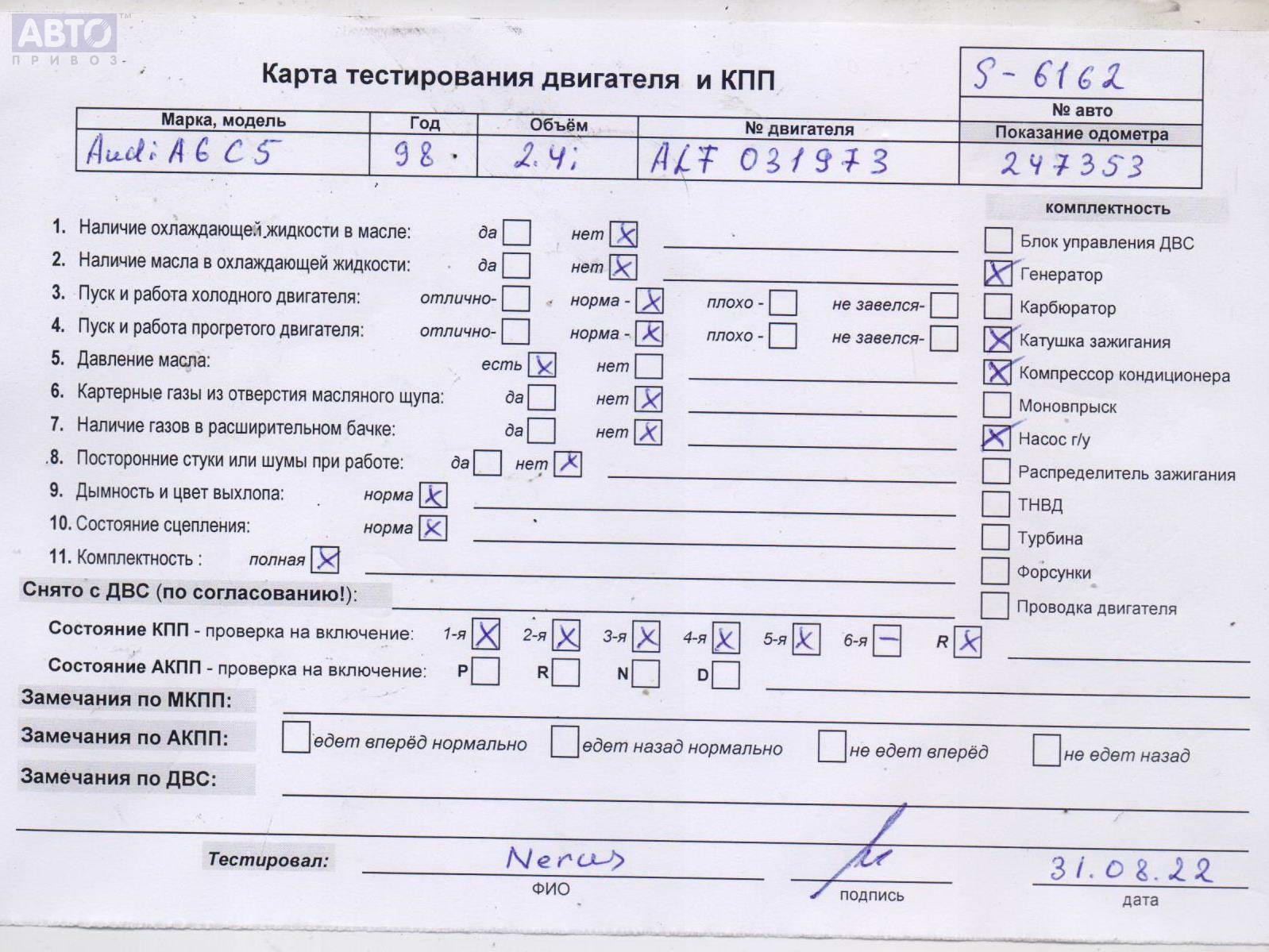 | Марка / Модель / Год: | Audi A6 C5 (1997-2005) 1998 |
