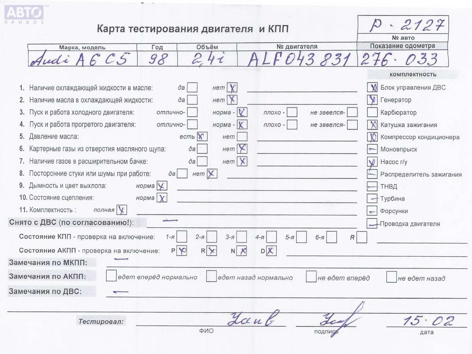 | Марка / Модель / Год: | Audi A6 C5 (1997-2005) 1998 |