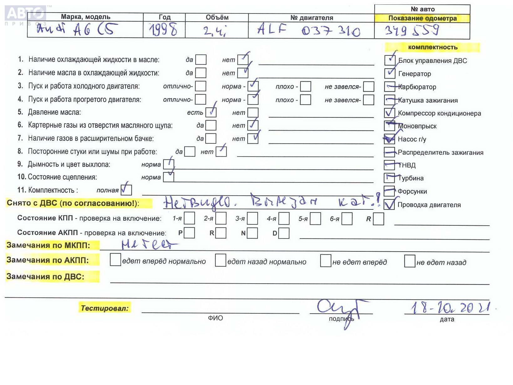 | Марка / Модель / Год: | Audi A6 C5 (1997-2005) 1998 |