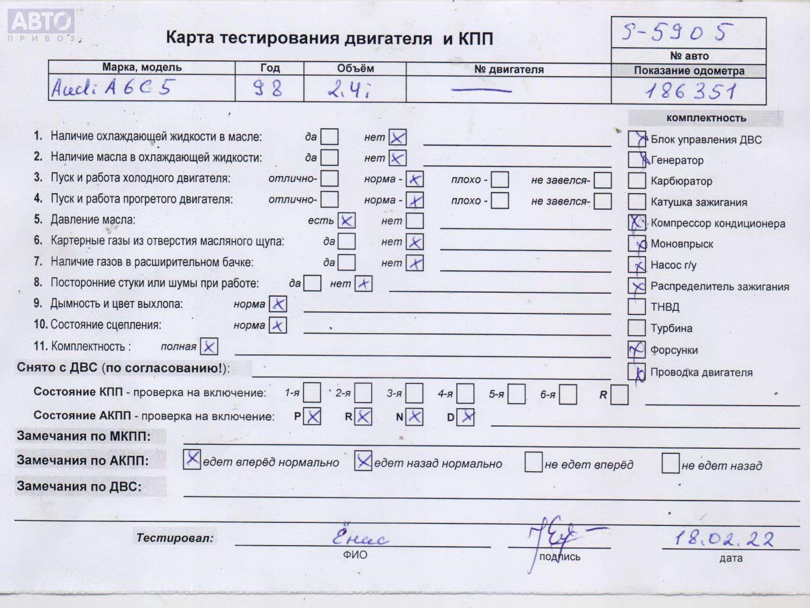 | Марка / Модель / Год: | Audi A6 C5 (1997-2005) 1998 |