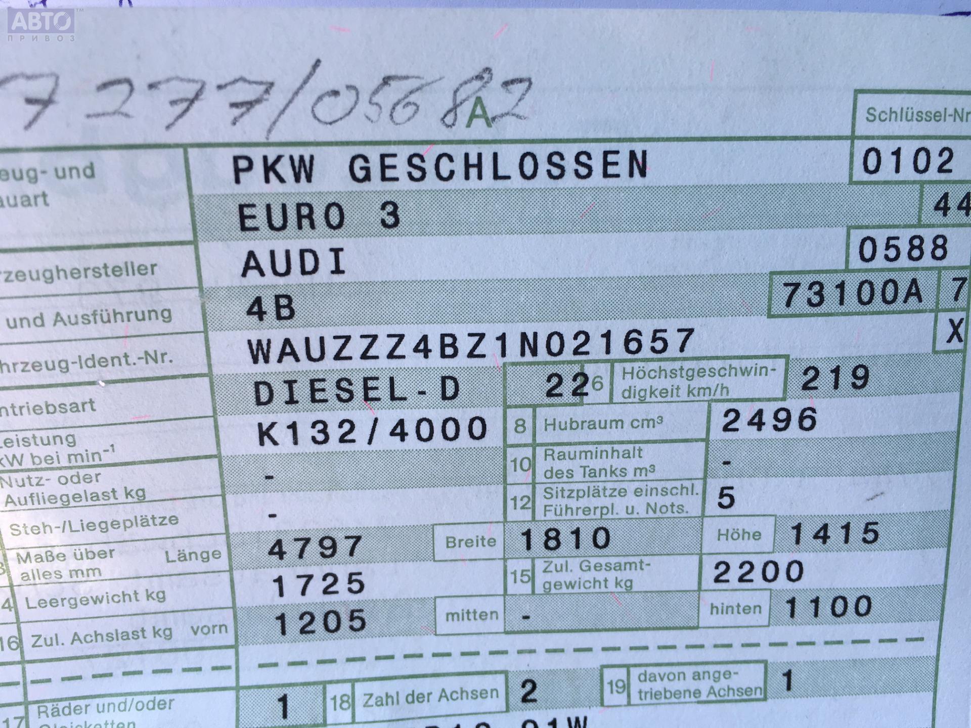 | Марка / Модель / Год: | Audi A6 C5 (1997-2005) 2000 |