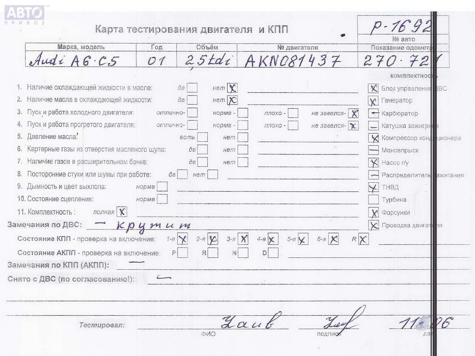 | Марка / Модель / Год: | Audi A6 C5 (1997-2005) 2001 |
