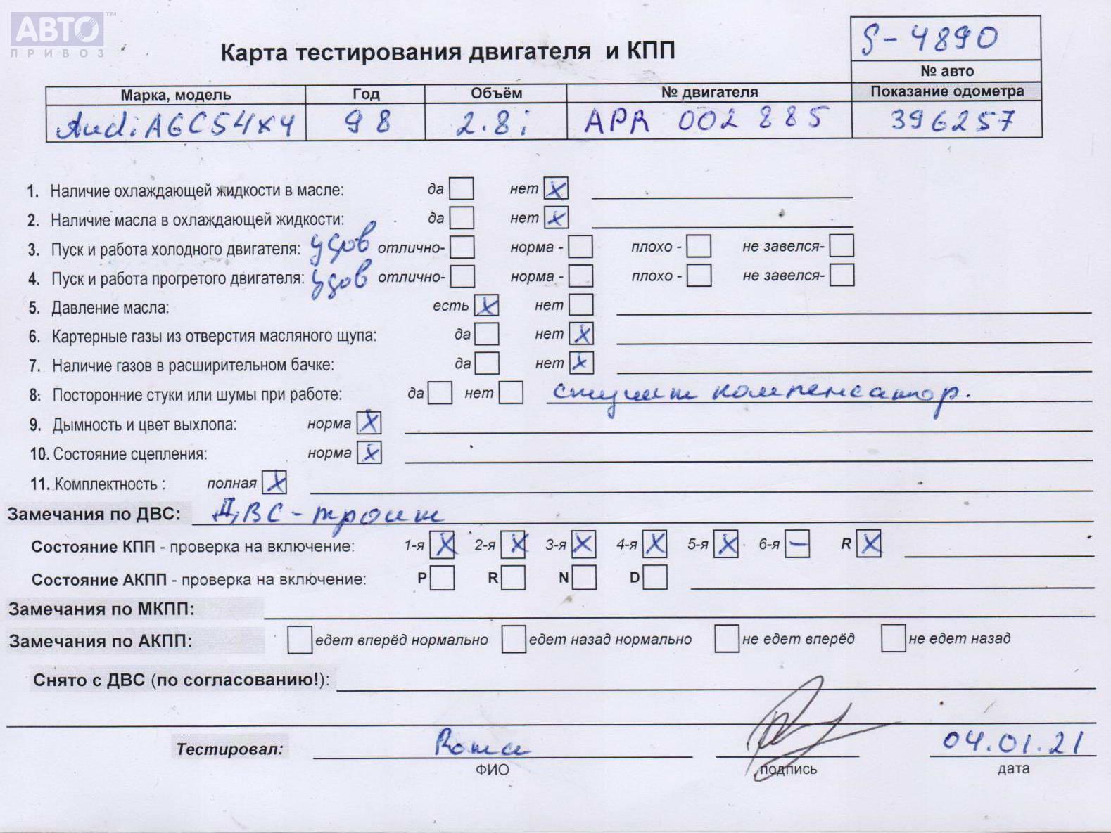 | Автомобиль / VIN: | S4890 WAUZZZ4BZXN070007 |