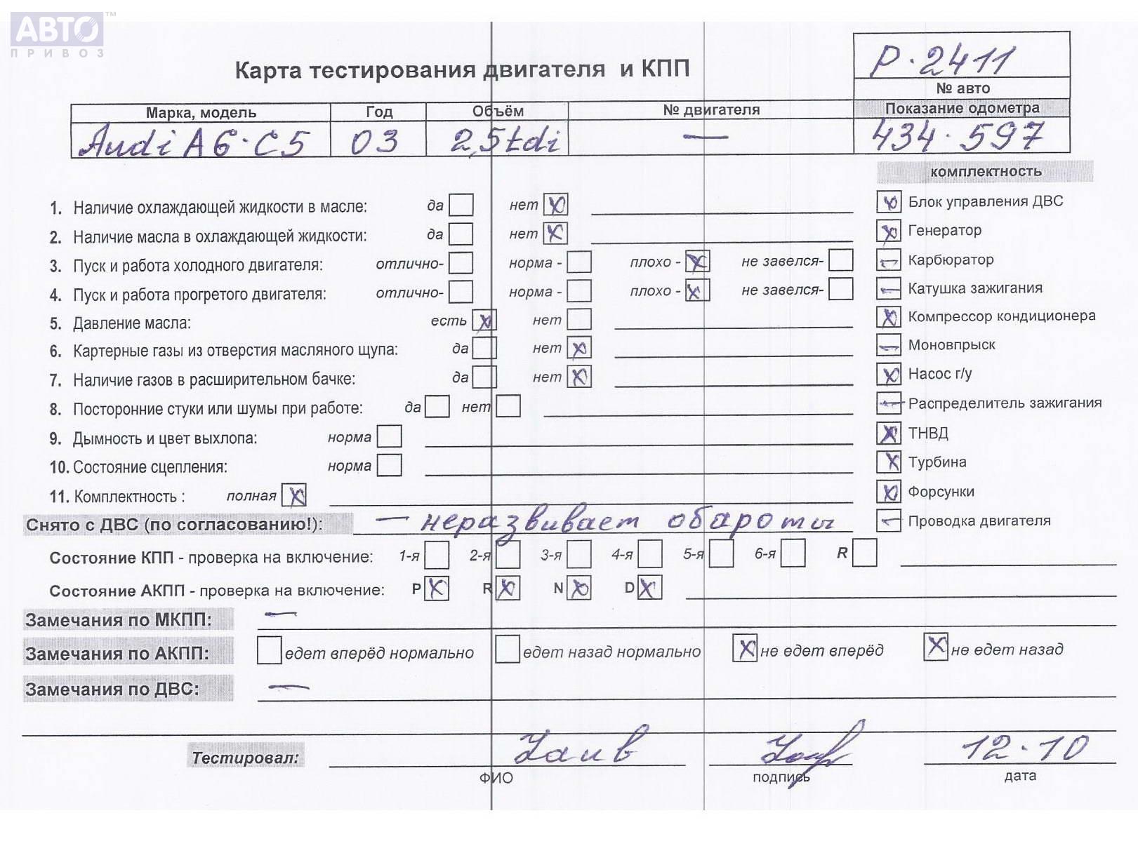 | Автомобиль / VIN: | P2411 WAUZZZ4BX4N015821 |