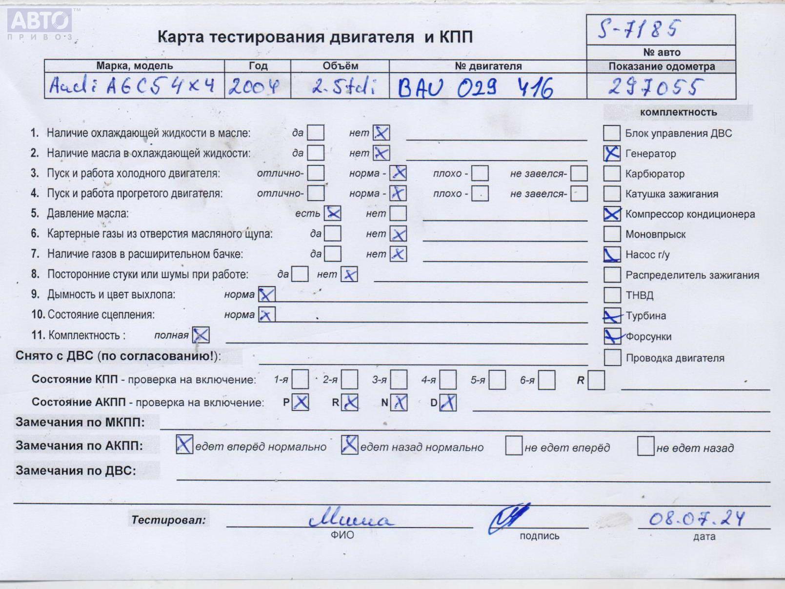 | Автомобиль / VIN: | S7185 WAUZZZ4BX4N086534 |