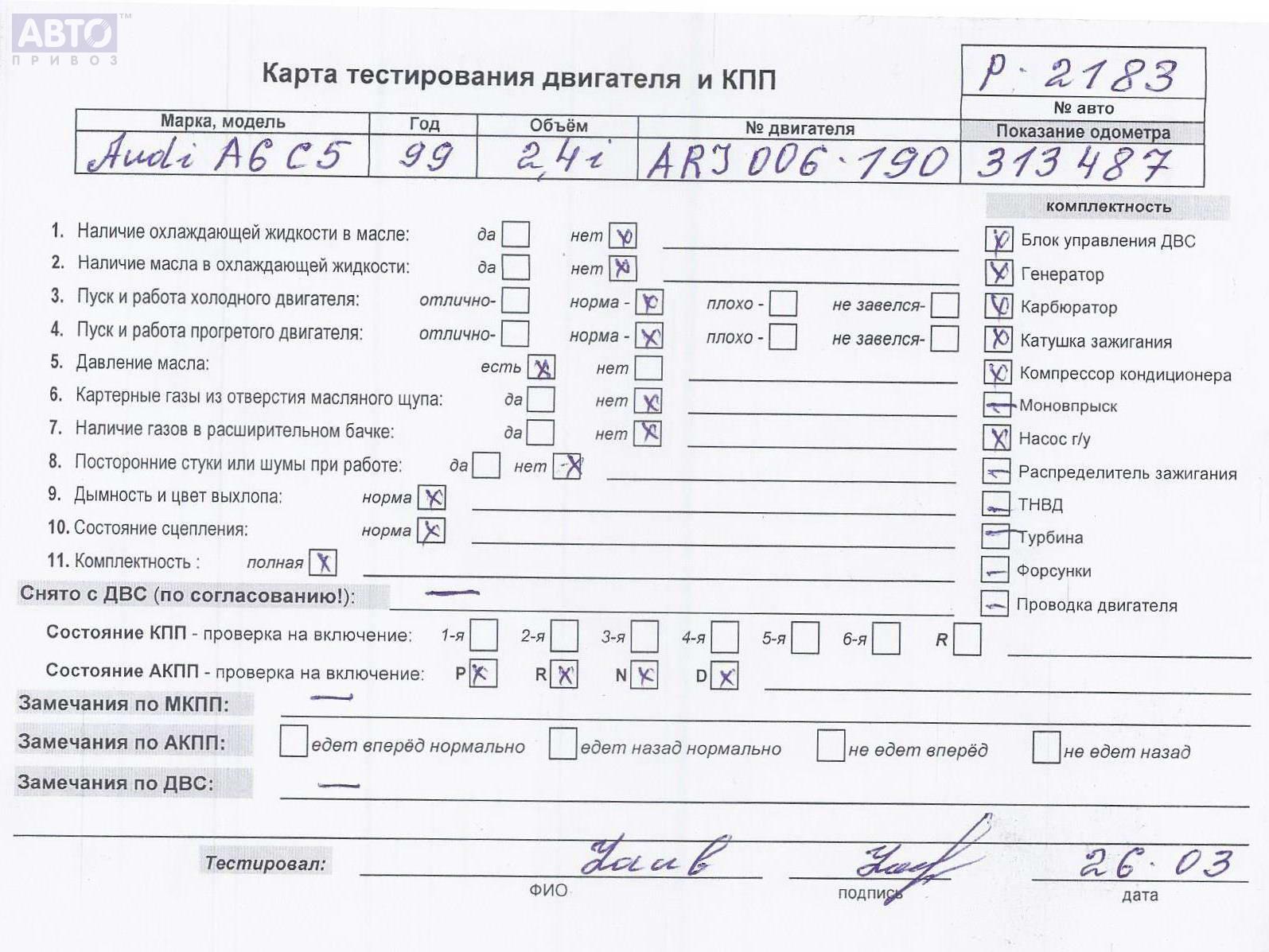 | Автомобиль / VIN: | P2183 WAUZZZ4BZXN103458 |