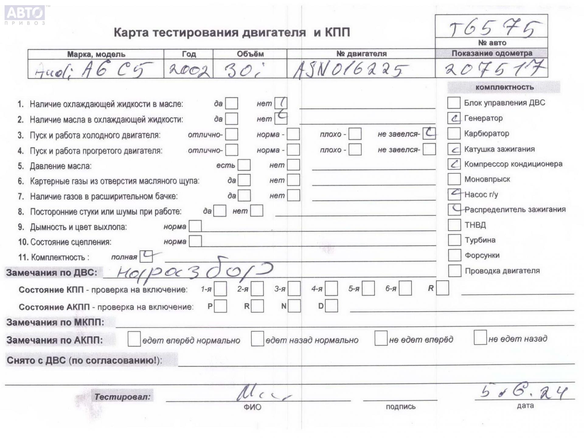 | Автомобиль / VIN: | T6575 WAUZZZ4B52N070058 |