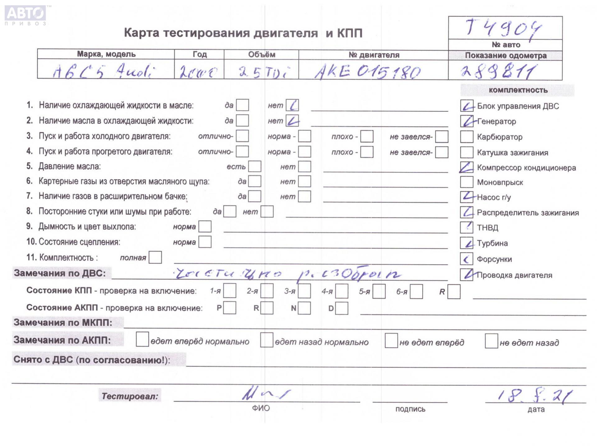 | Марка / Модель / Год: | Audi A6 C5 (1997-2005) 2000 |