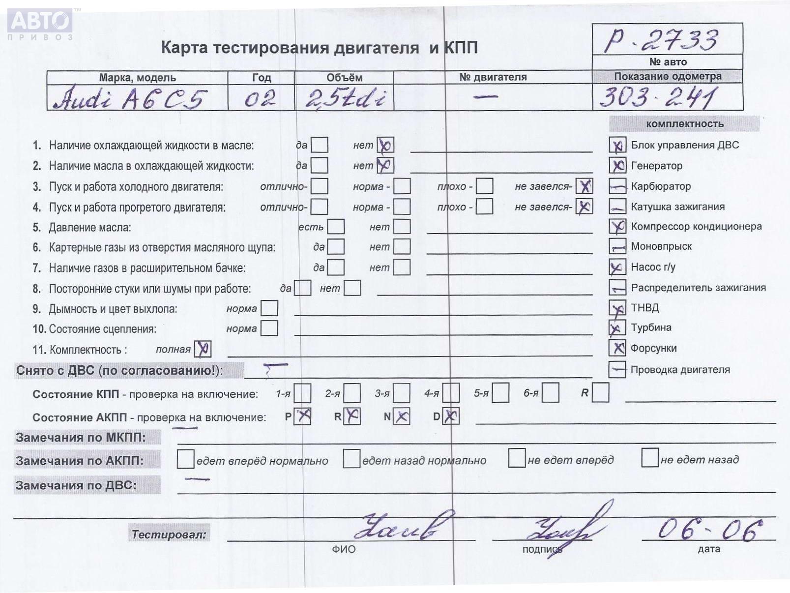 | Автомобиль / VIN: | P2733 WAUZZZ4BX3N001853 |