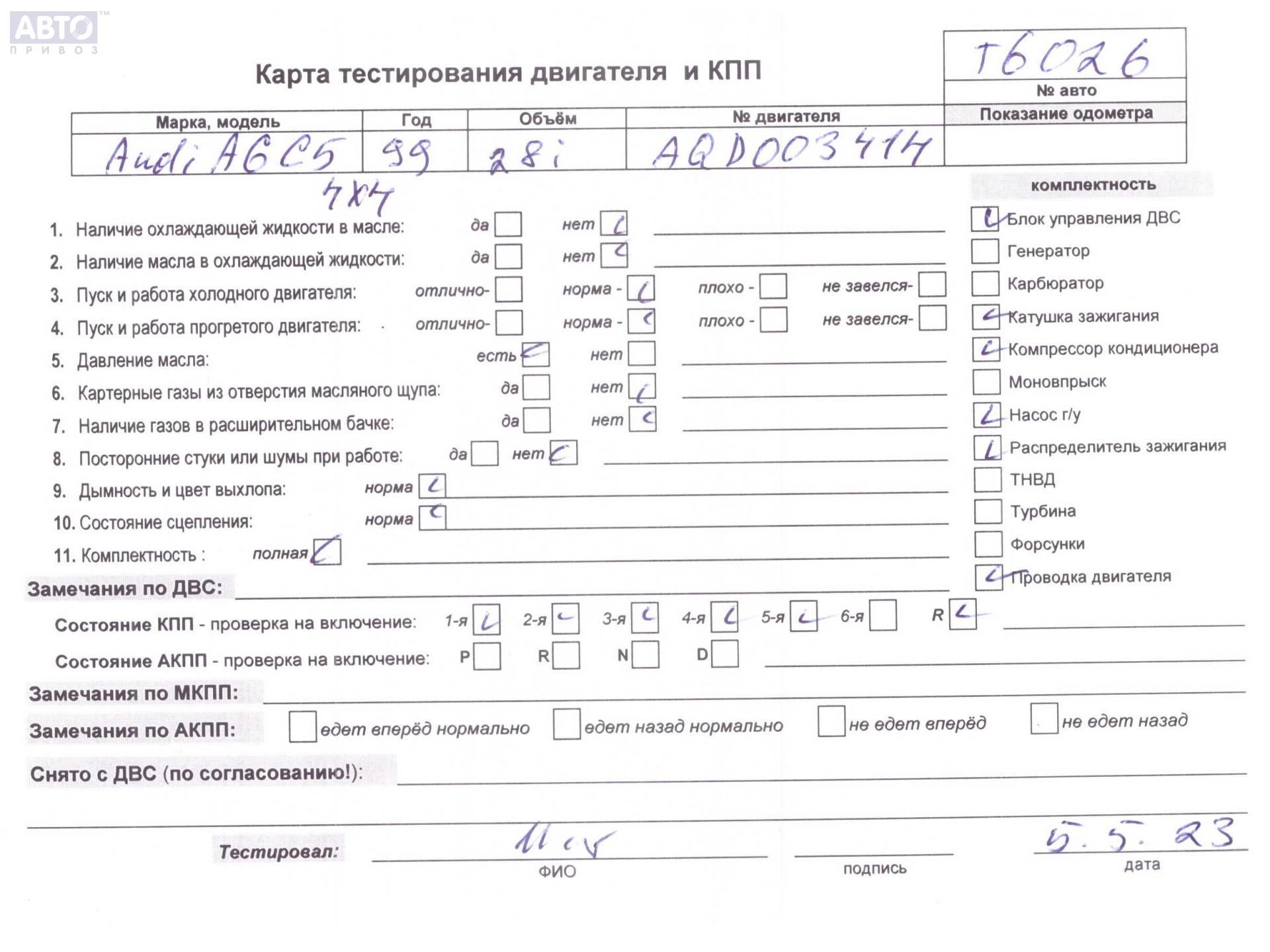 | Автомобиль / VIN: | T6026 WAUZZZ4BZXN097257 |