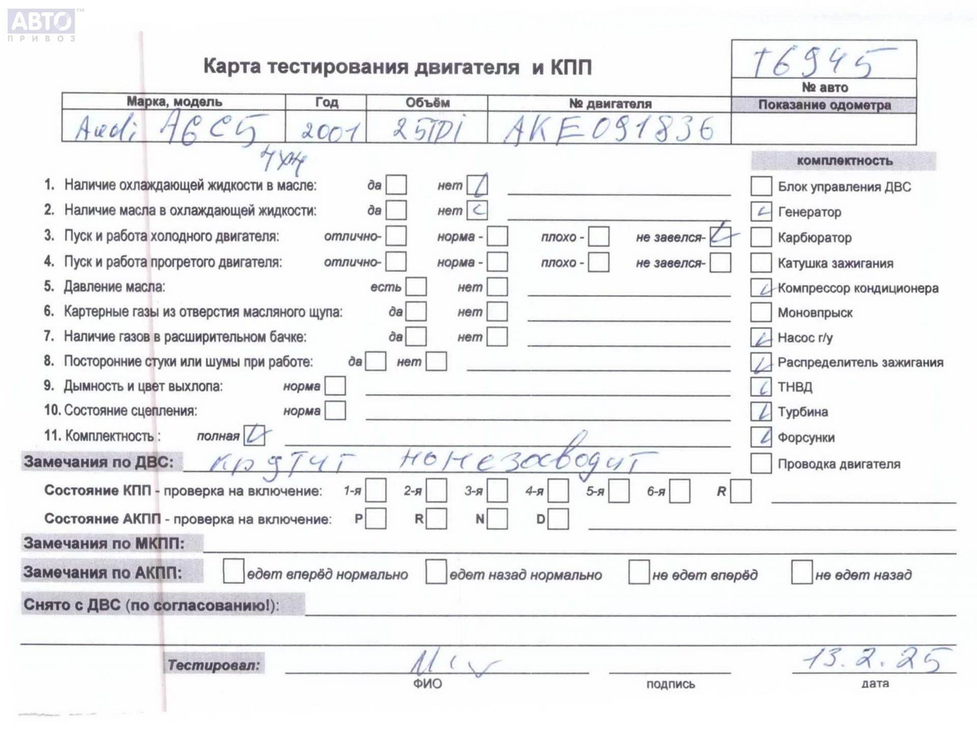 | Марка / Модель / Год: | Audi A6 C5 (1997-2005) 2002 |