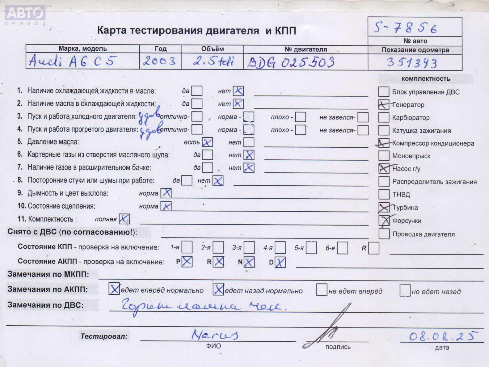 | Марка / Модель / Год: | Audi A6 C5 (1997-2005) 2003 |