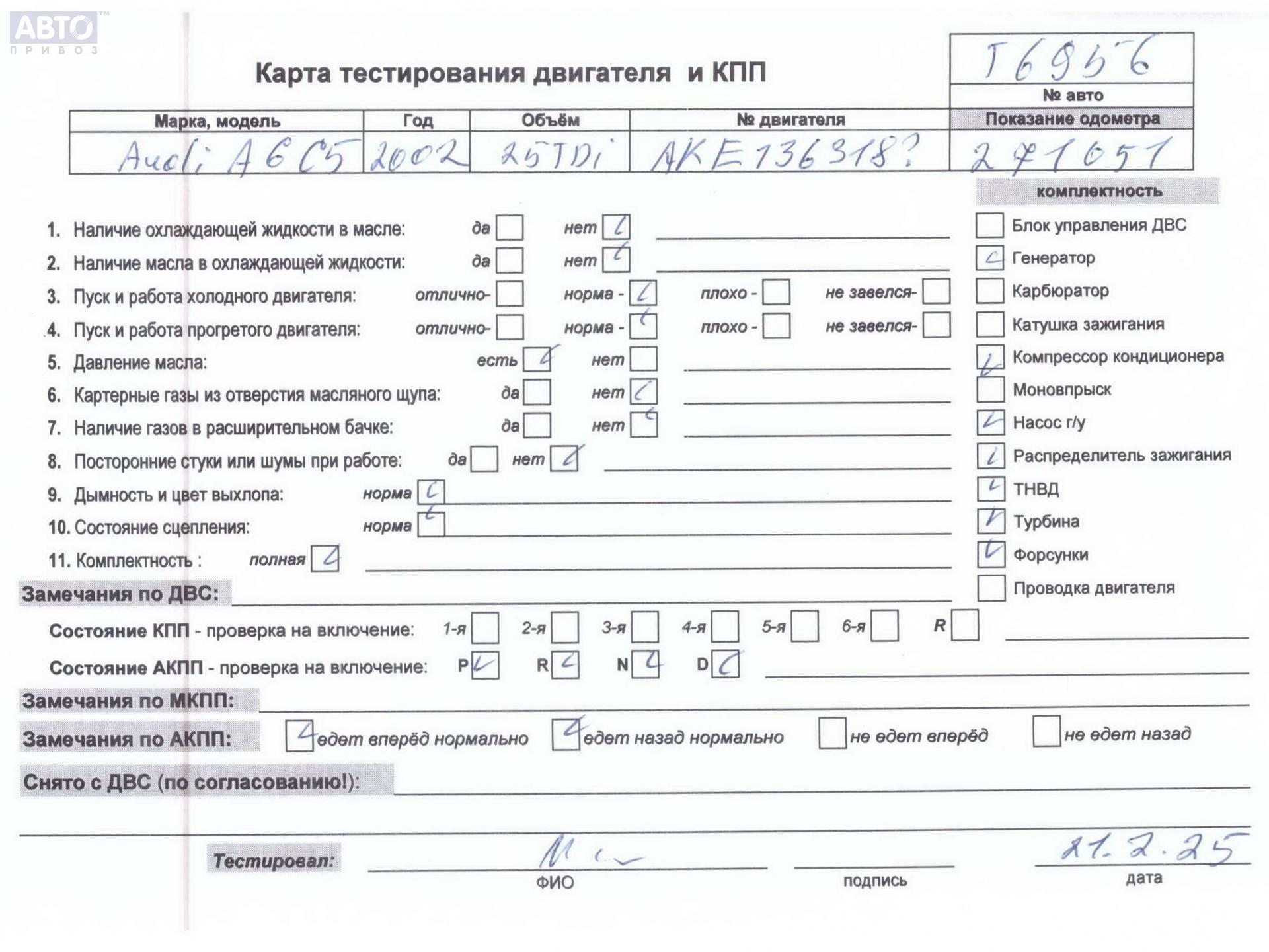 | Марка / Модель / Год: | Audi A6 C5 (1997-2005) 2002 |