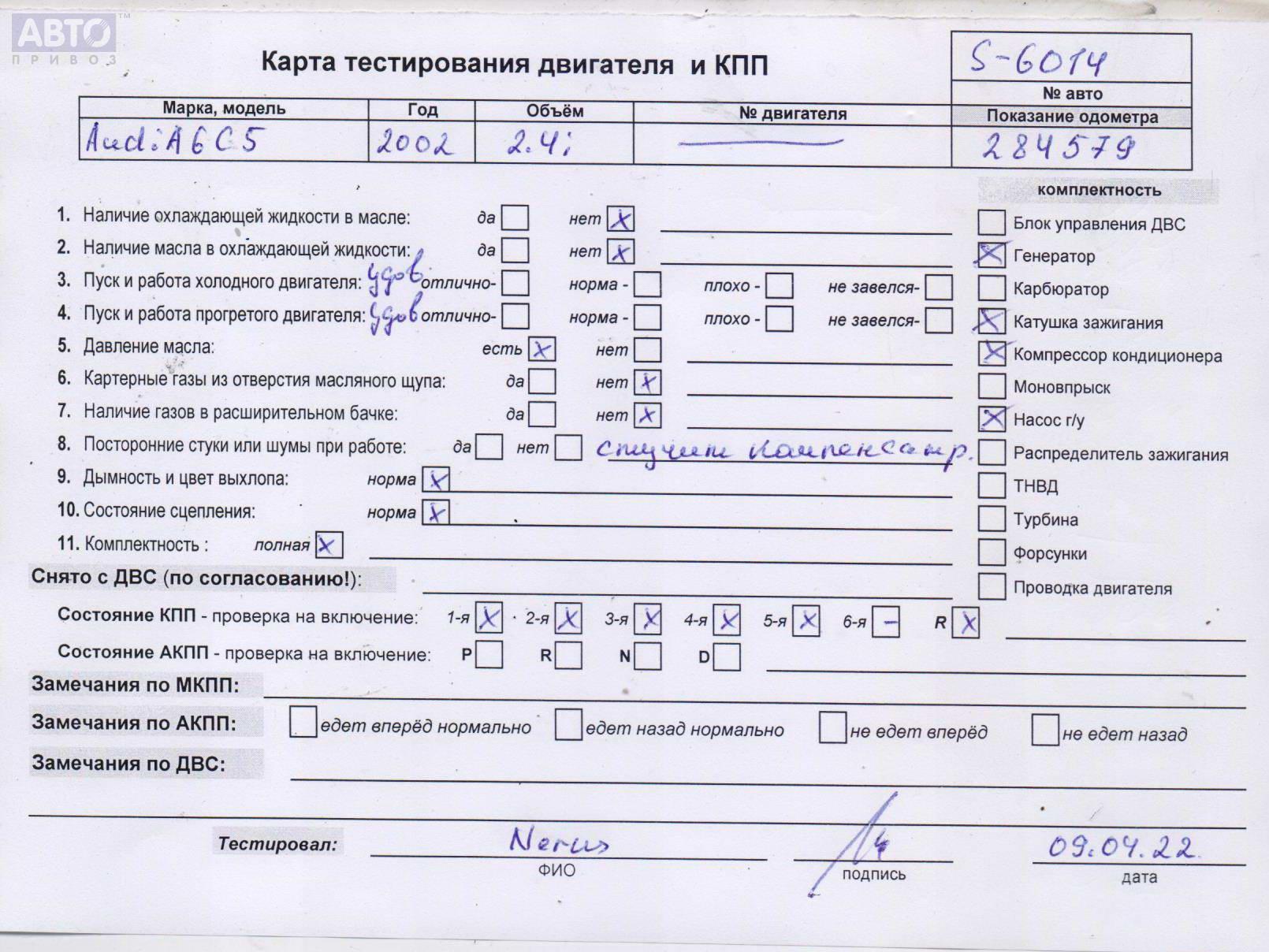 | Марка / Модель / Год: | Audi A6 C5 (1997-2005) 2002 |