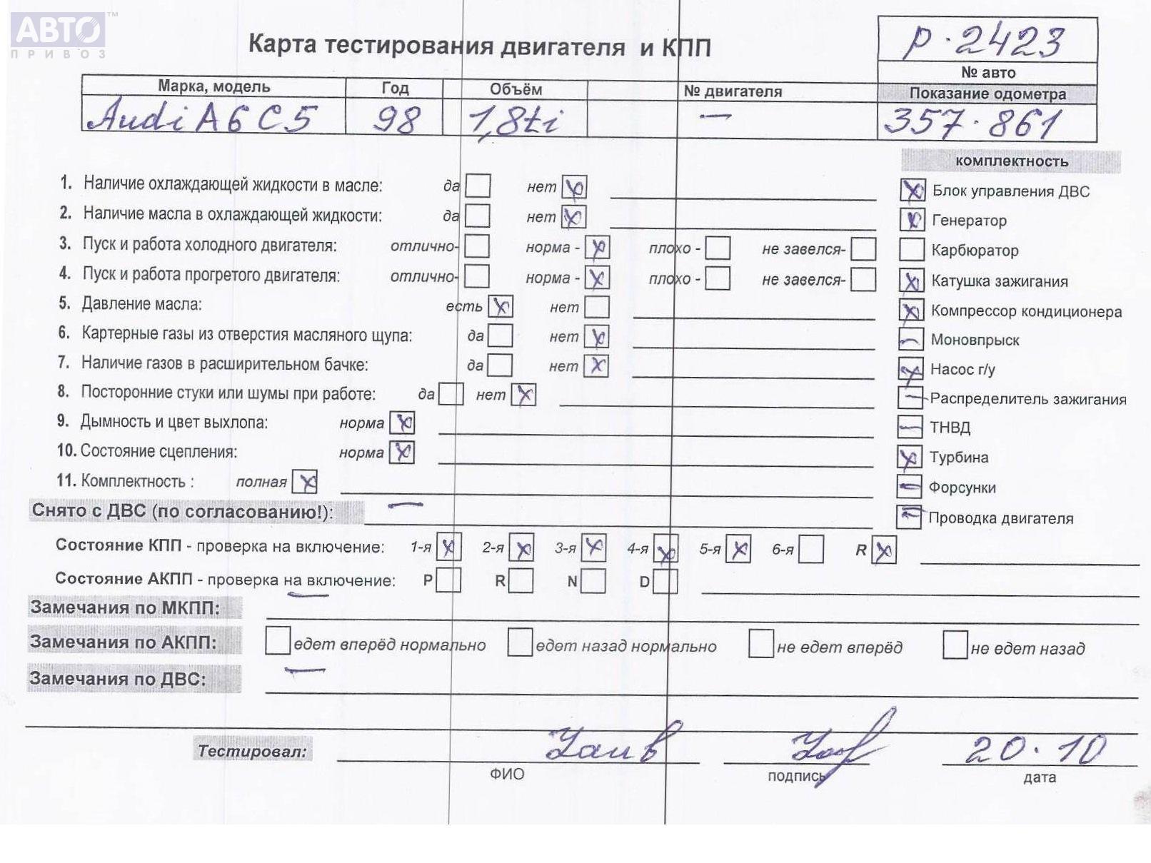 | Марка / Модель / Год: | Audi A6 C5 (1997-2005) 1998 |