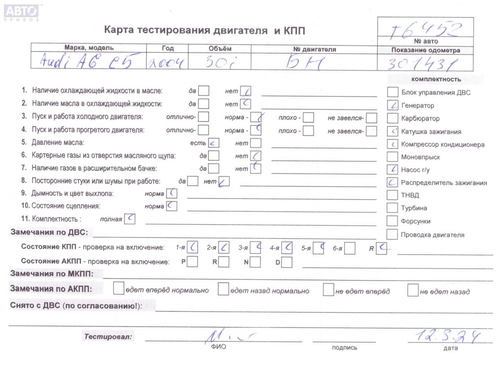| Марка / Модель / Год: | Audi A6 C5 (1997-2005) 2004 |