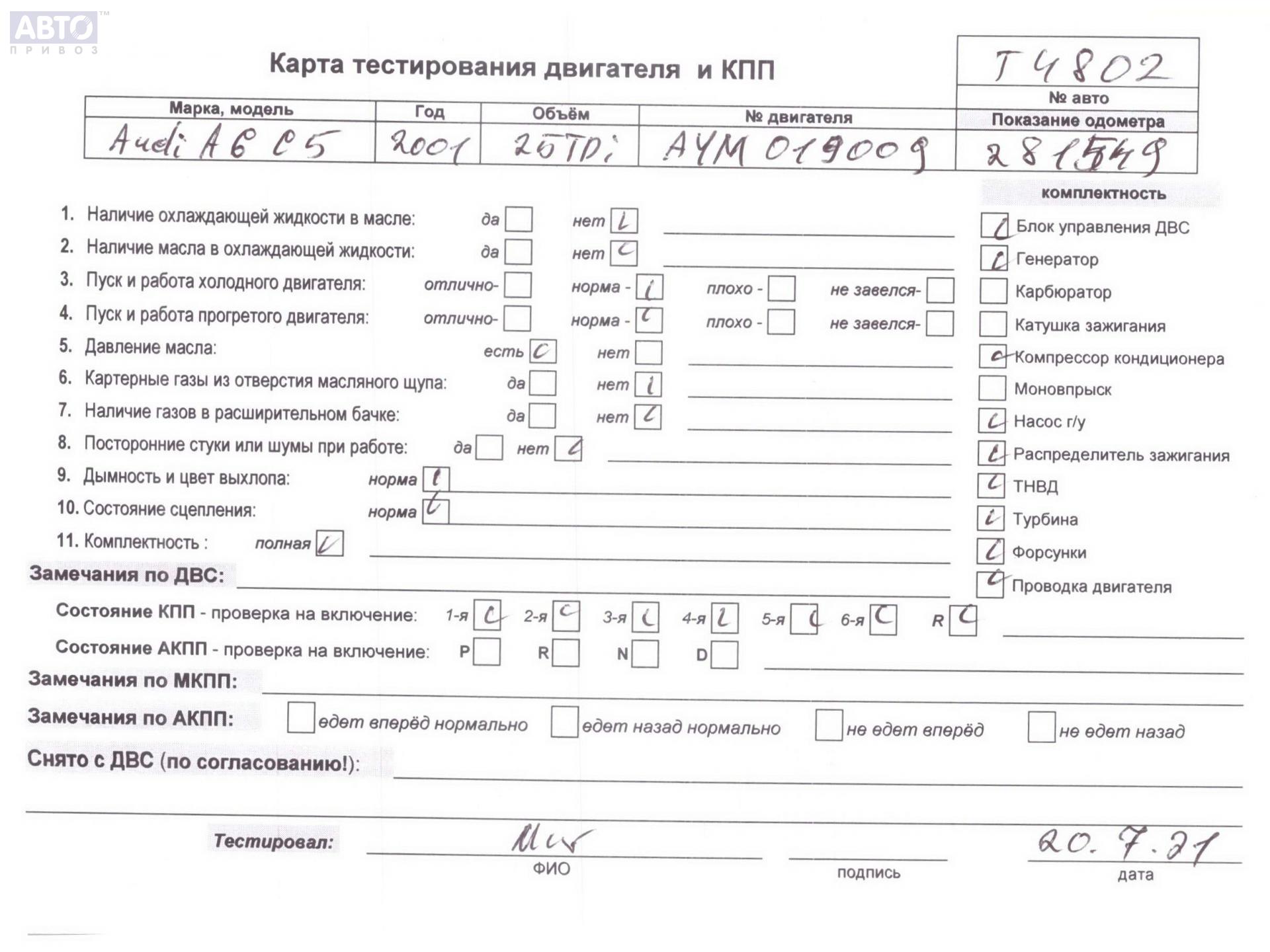 | Марка / Модель / Год: | Audi A6 C5 (1997-2005) 2002 |