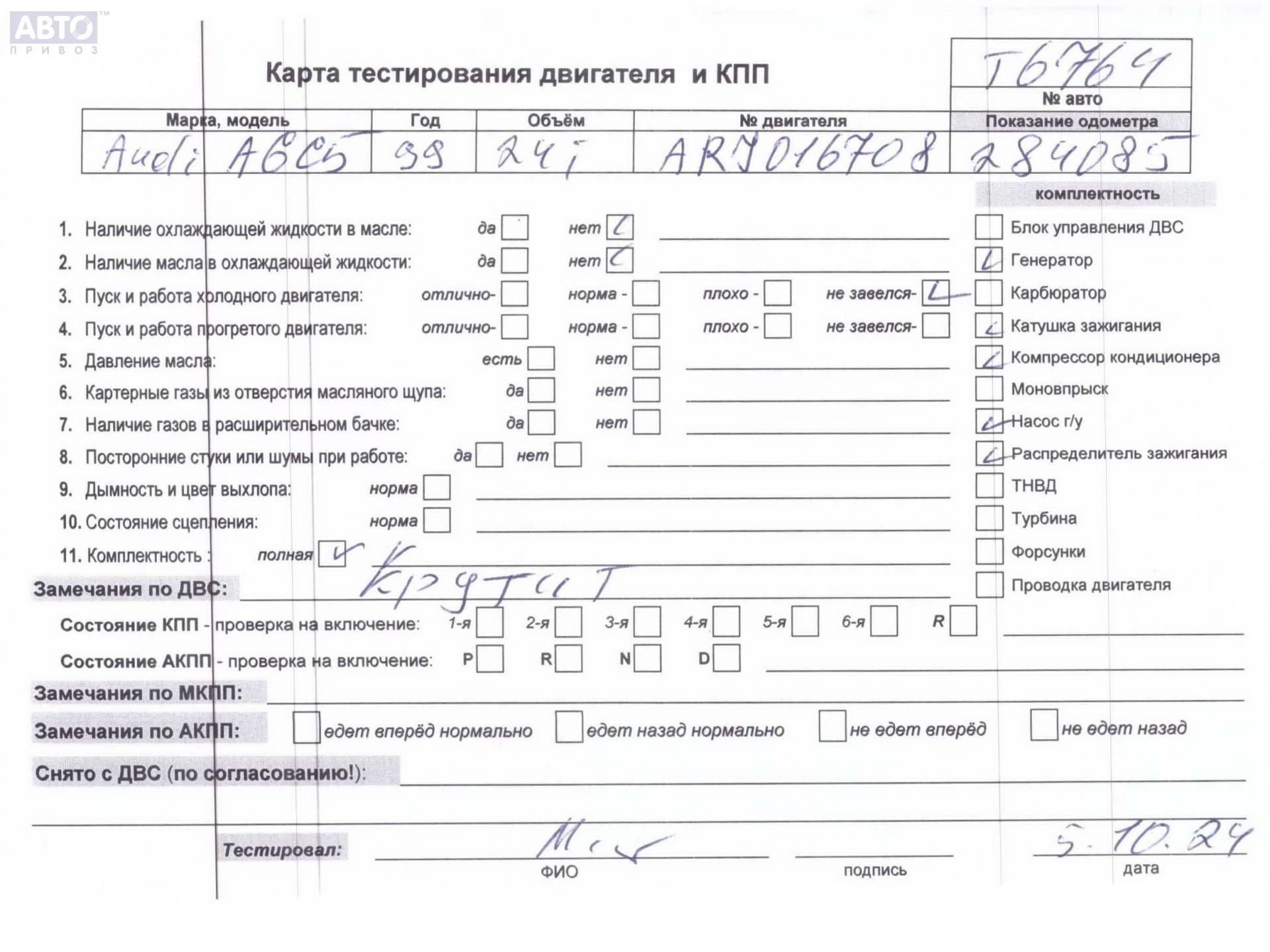 | Автомобиль / VIN: | T6764 WAUZZZ4BZYN028497 |
