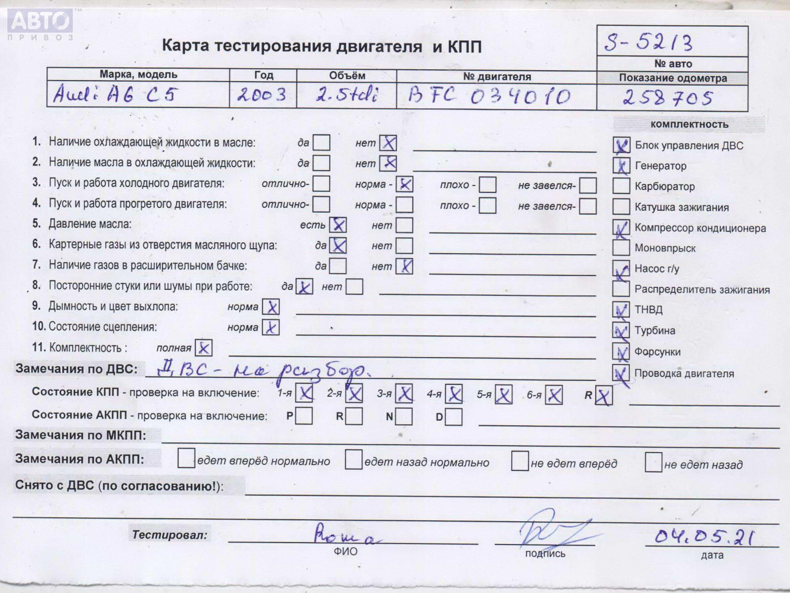 | Марка / Модель / Год: | Audi A6 C5 (1997-2005) 2003 |