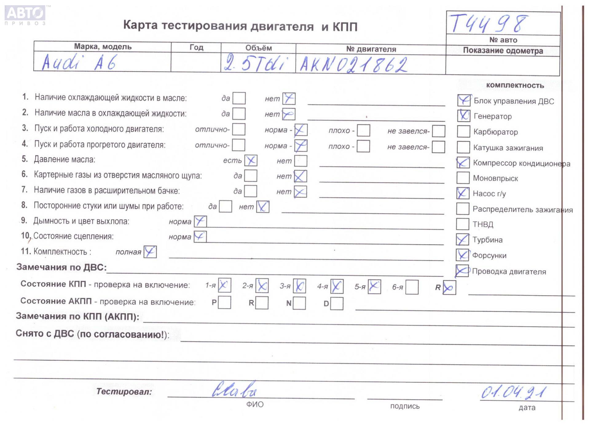| Автомобиль / VIN: | T4498 WAUZZZ4BZYN025107 |
