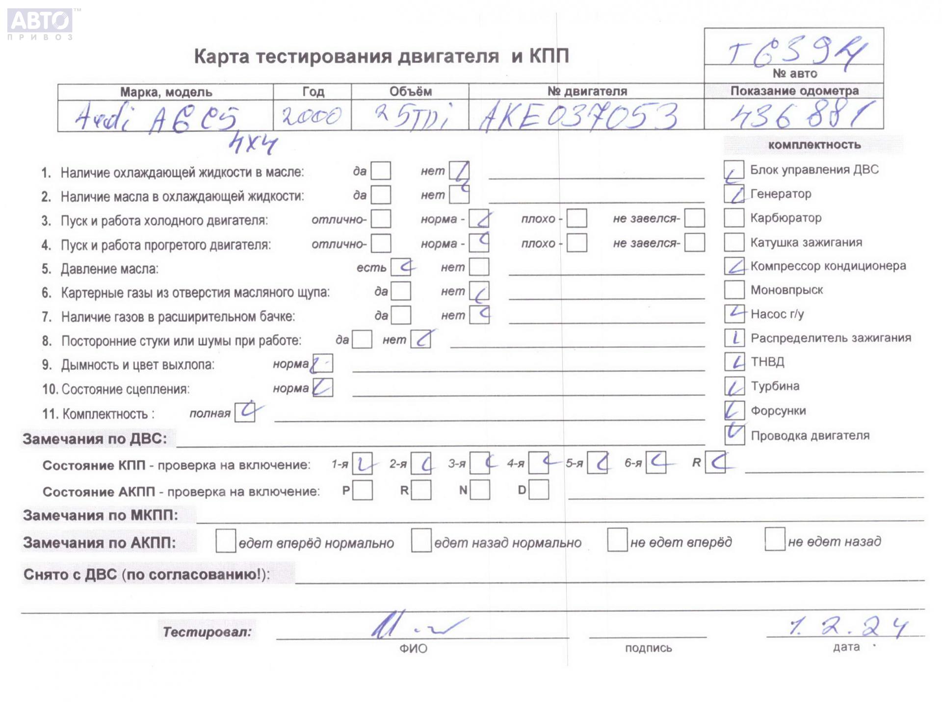 | Автомобиль / VIN: | T6394 WAUZZZ4BZ1N065502 |