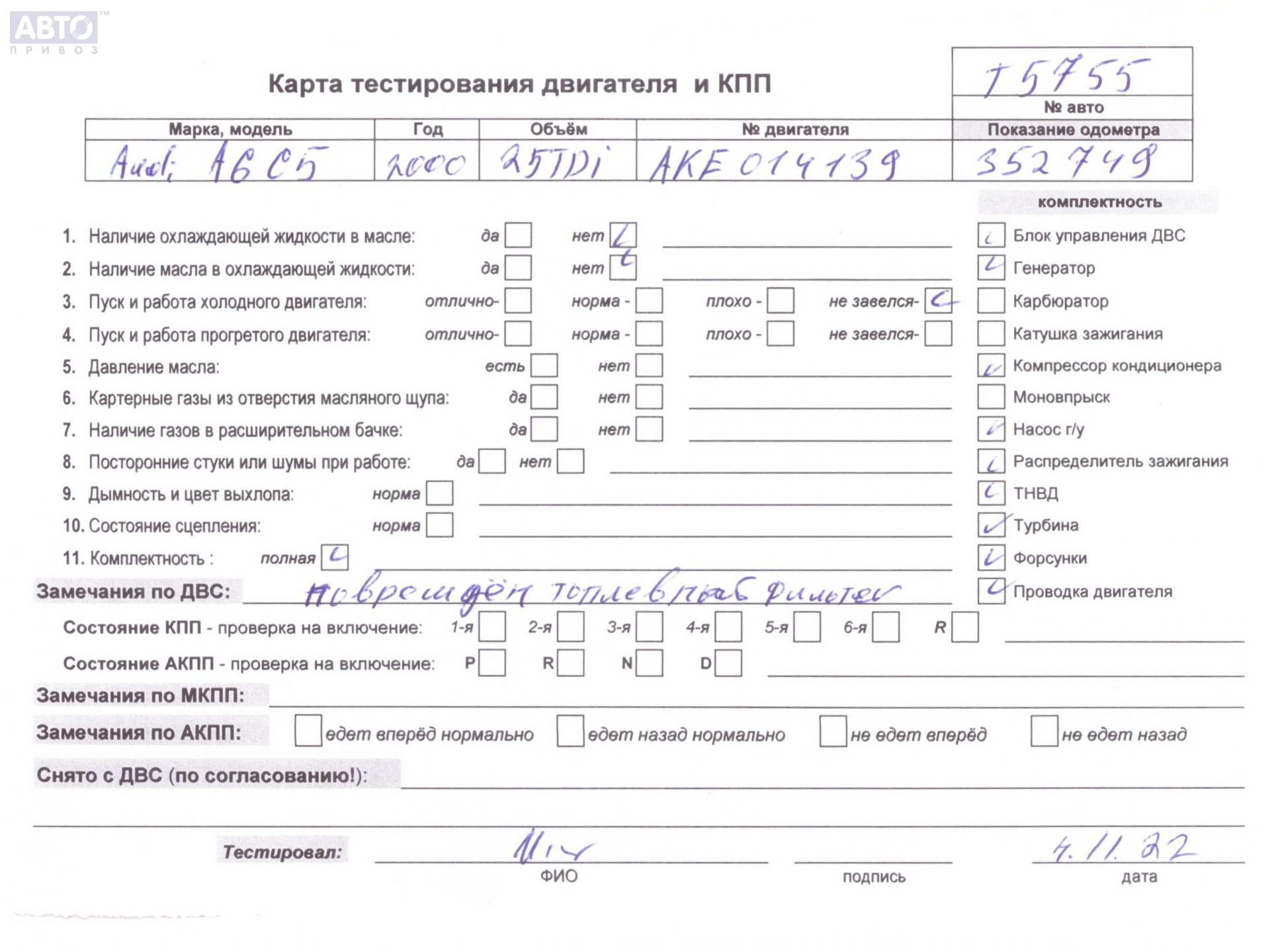 | Автомобиль / VIN: | T5755 WAUZZZ4BZYN127482 |