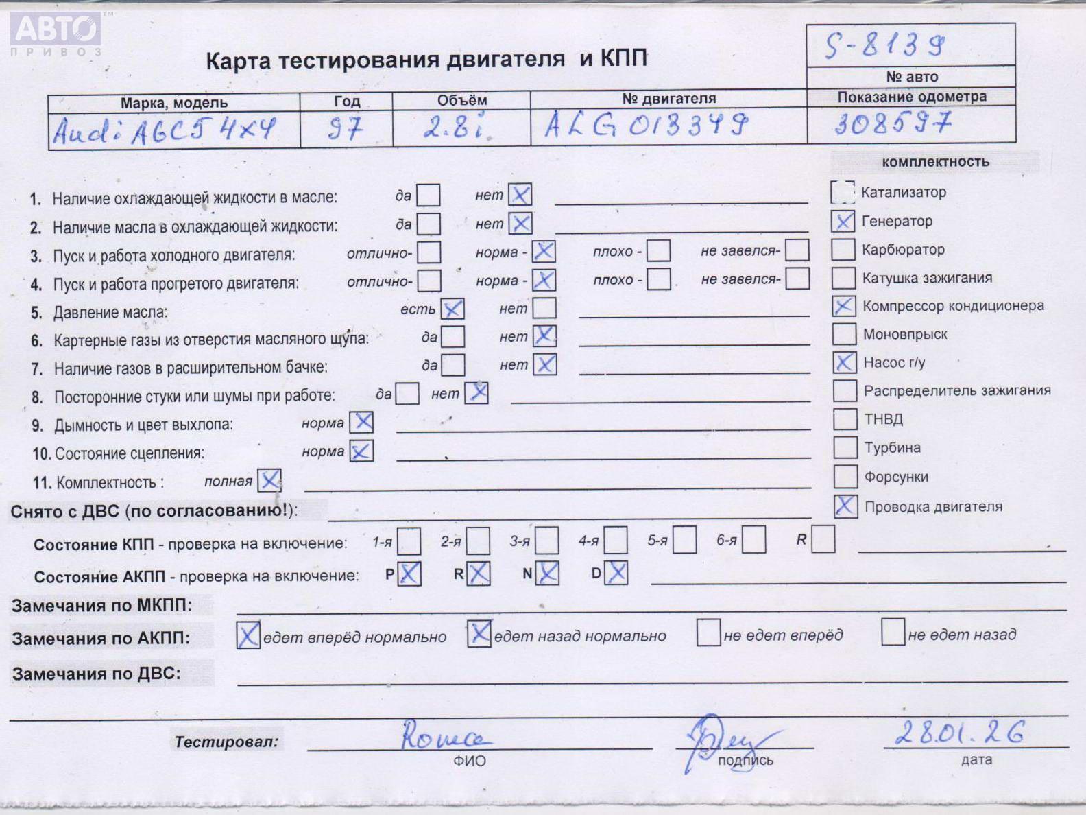 | Марка / Модель / Год: | Audi A6 C5 (1997-2005) 1997 |