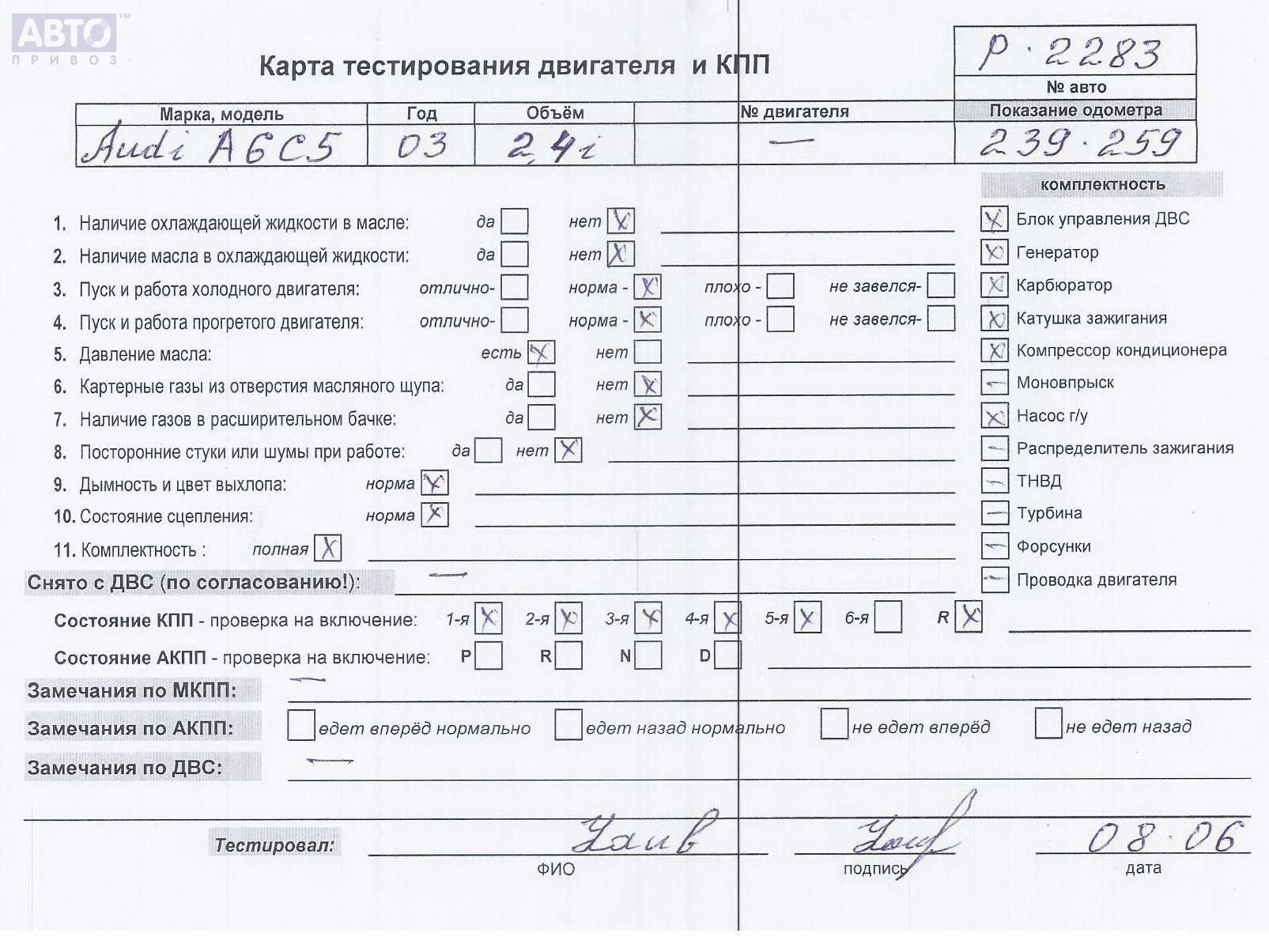 | Автомобиль / VIN: | P2283 WAUZZZ4B44N018553 |
