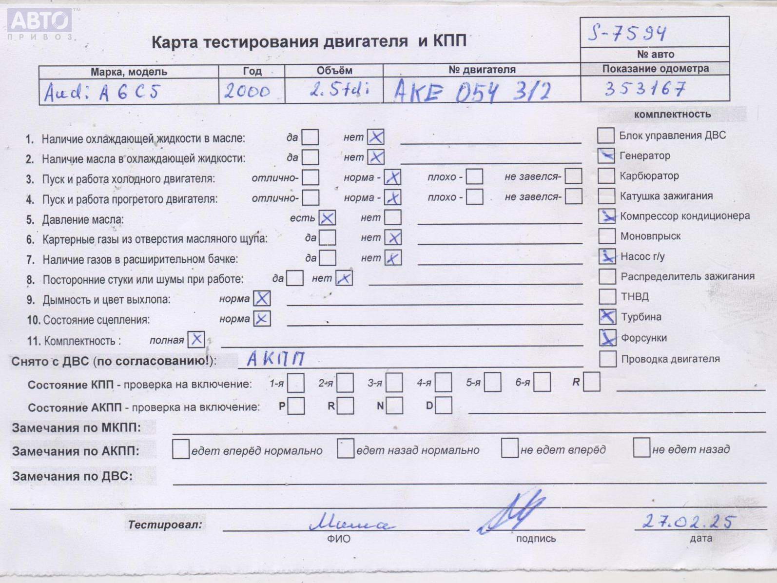 | Марка / Модель / Год: | Audi A6 C5 (1997-2005) 2000 |