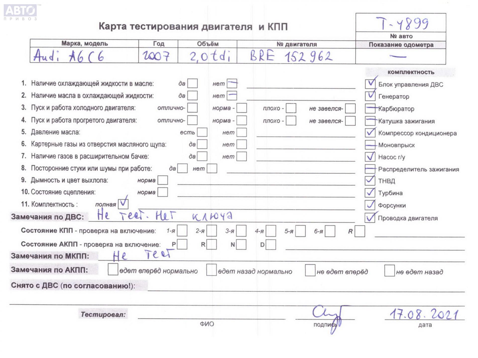 | Марка / Модель / Год: | Audi A6 C6 (2004-2011) 2007 |