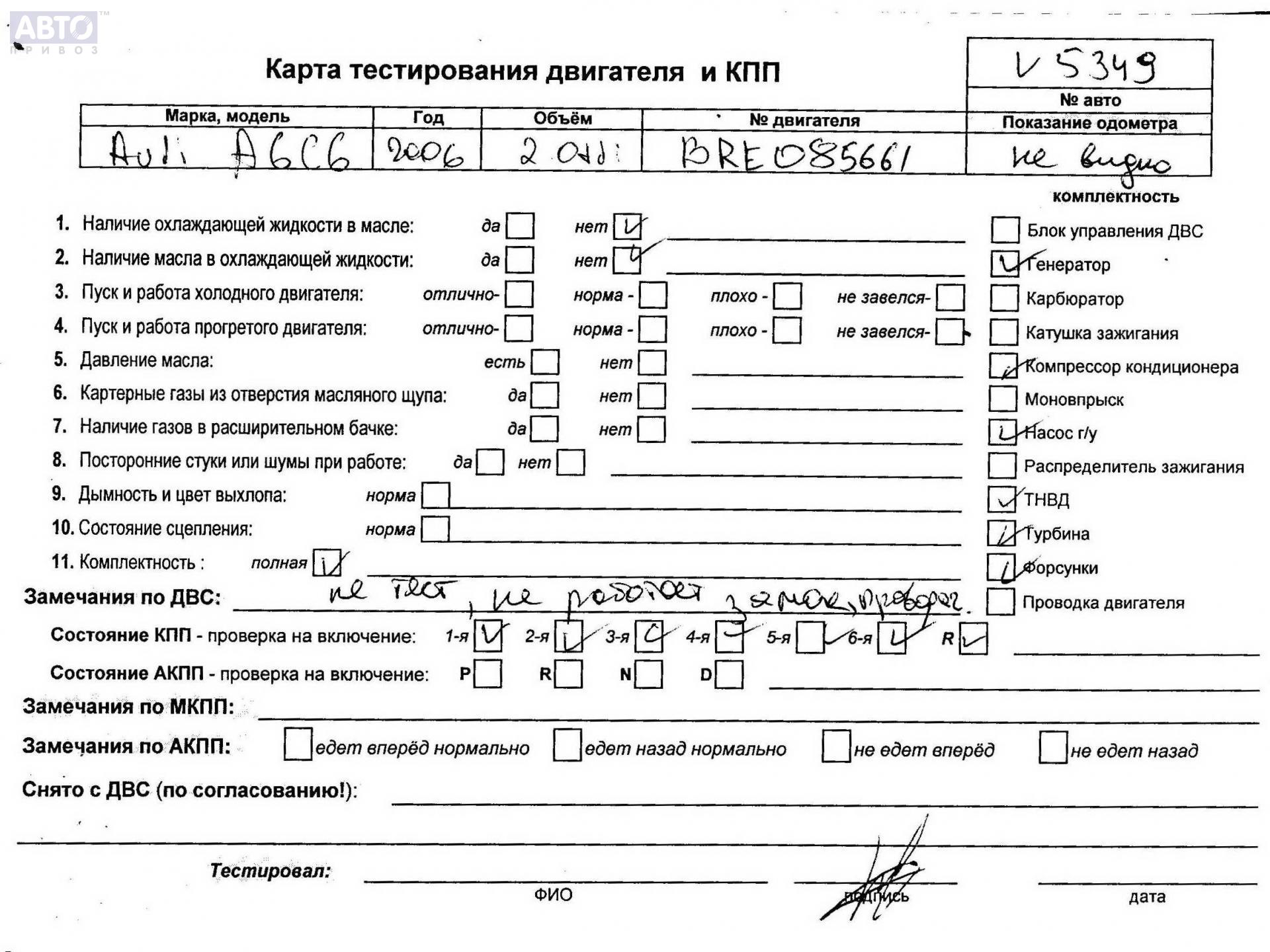 | Марка / Модель / Год: | Audi A6 C6 (2004-2011) 2006 |