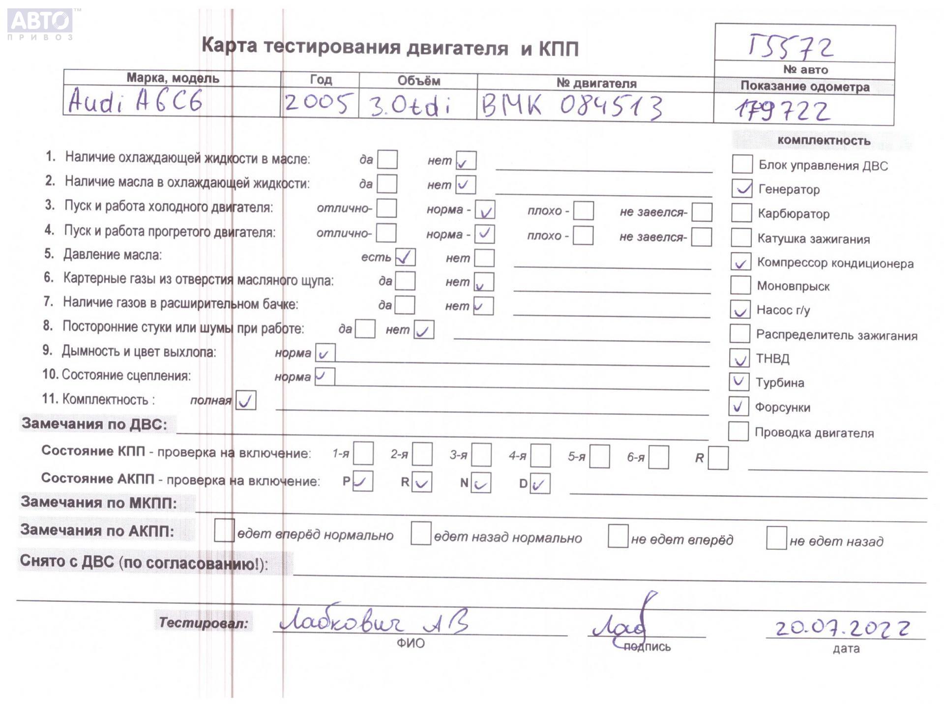 | Марка / Модель / Год: | Audi A6 C6 (2004-2011) 2005 |