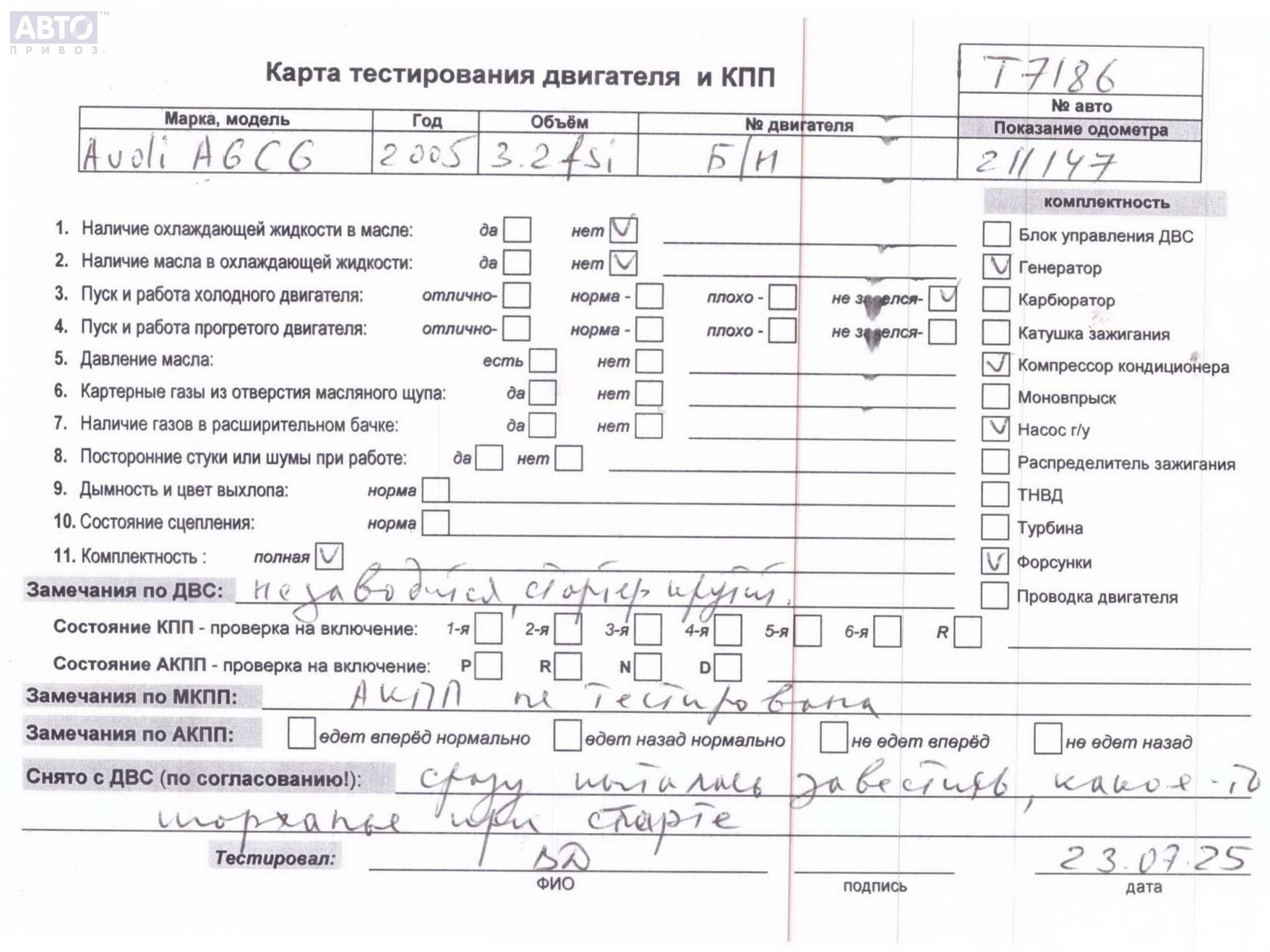 | Автомобиль / VIN: | T7186 WAUZZZ4F56N031270 |