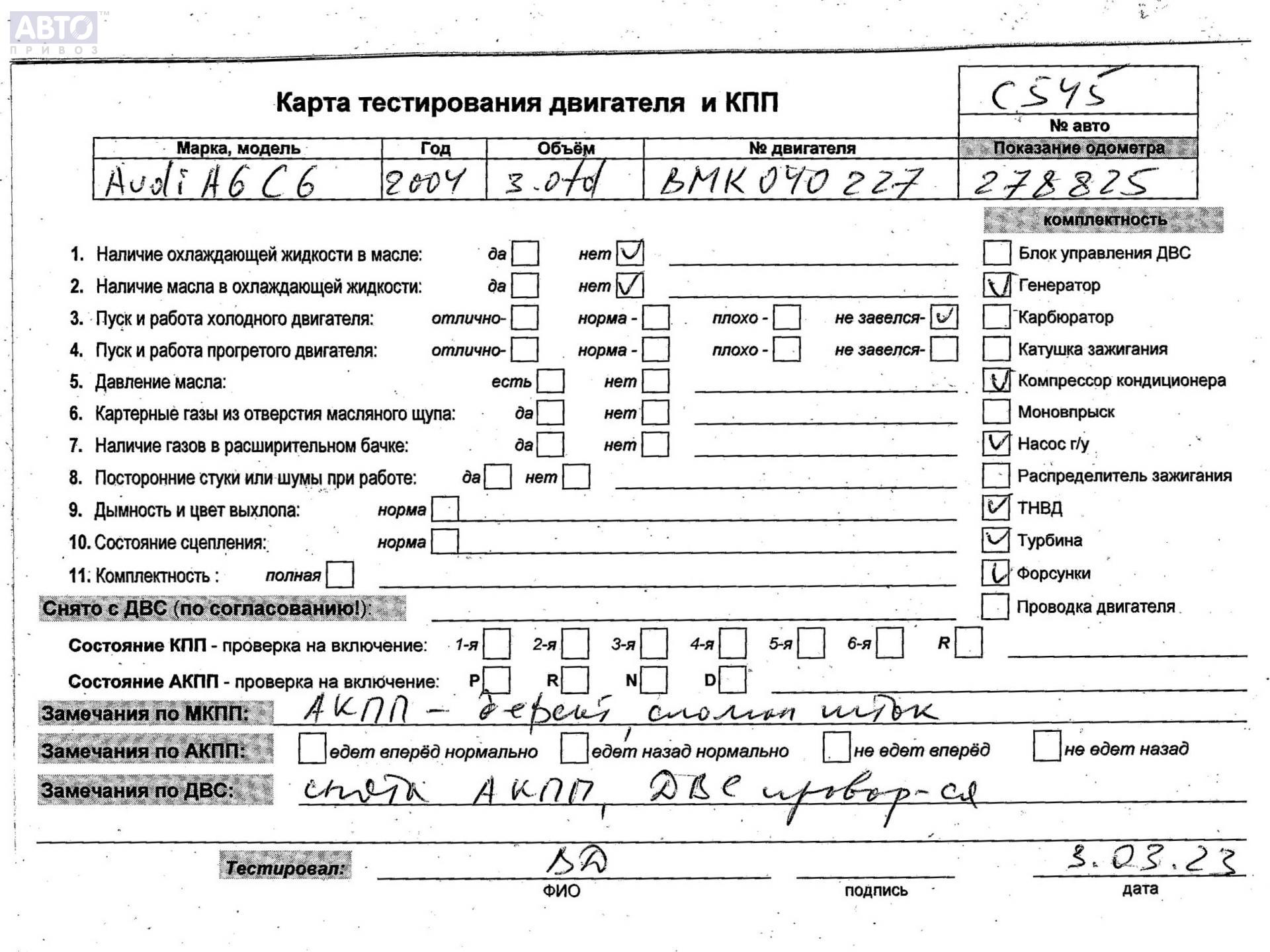 | Марка / Модель / Год: | Audi A6 C6 (2004-2011) 2004 |