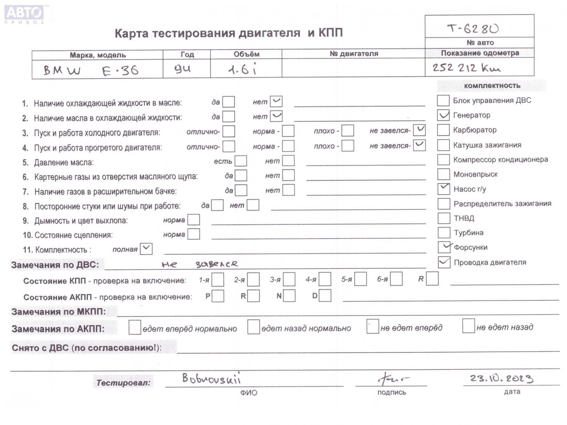 | Автомобиль / VIN: | T6280 WBACA81090AC42156 |