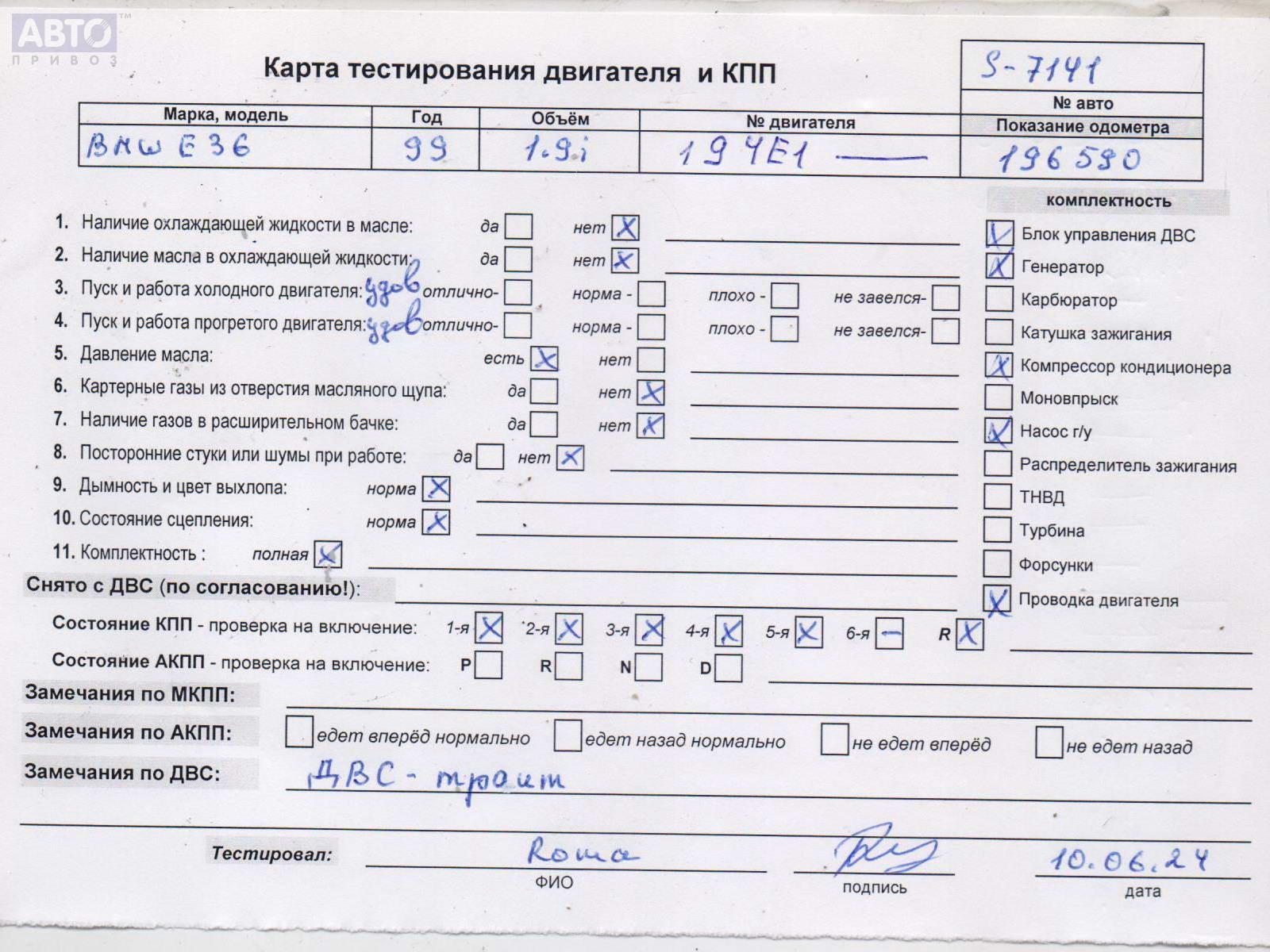 | Автомобиль / VIN: | S7141 WBACS11010FR71532 |