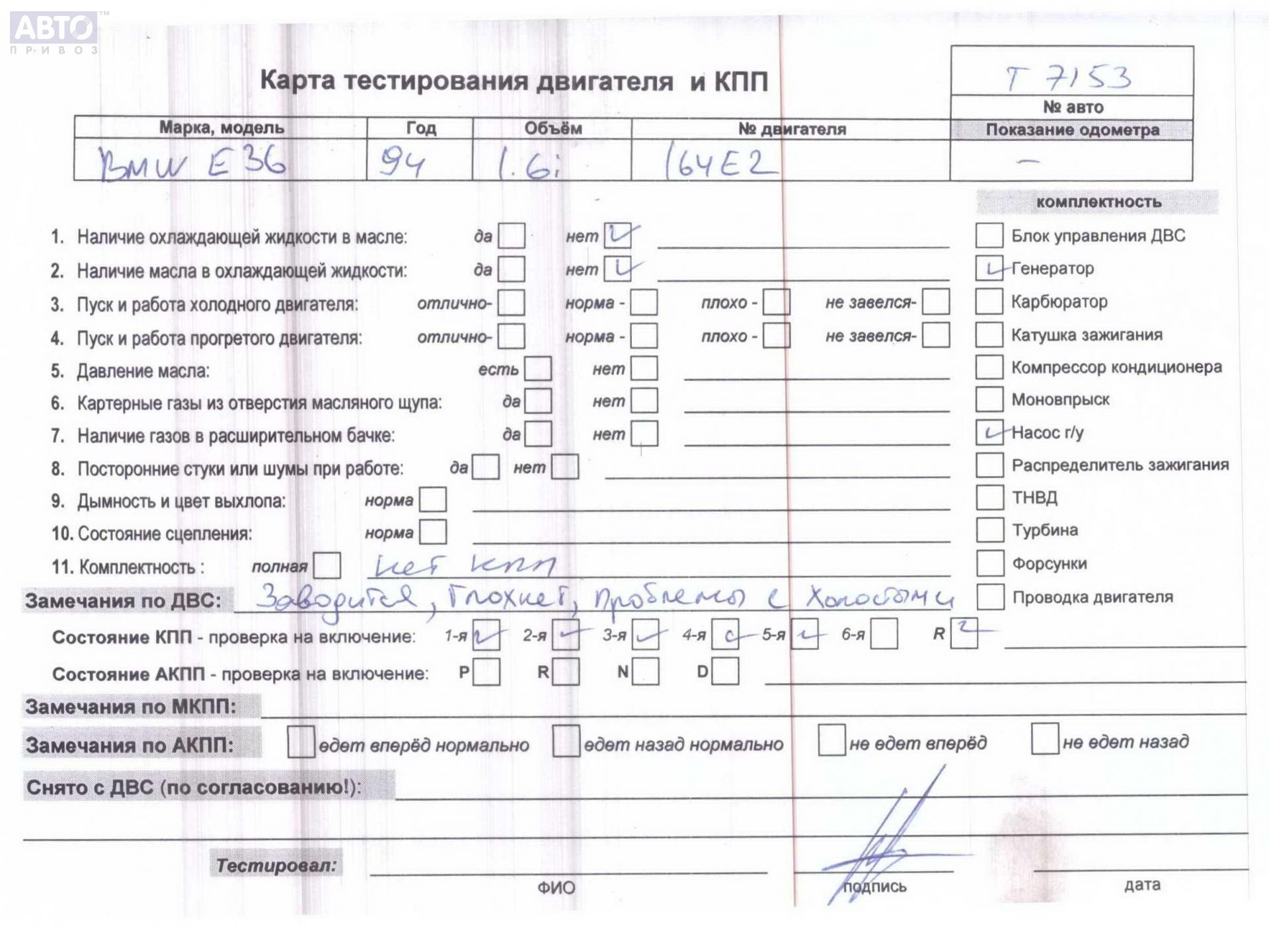 | Автомобиль / VIN: | T7153 WBACG110X0KB81903 |