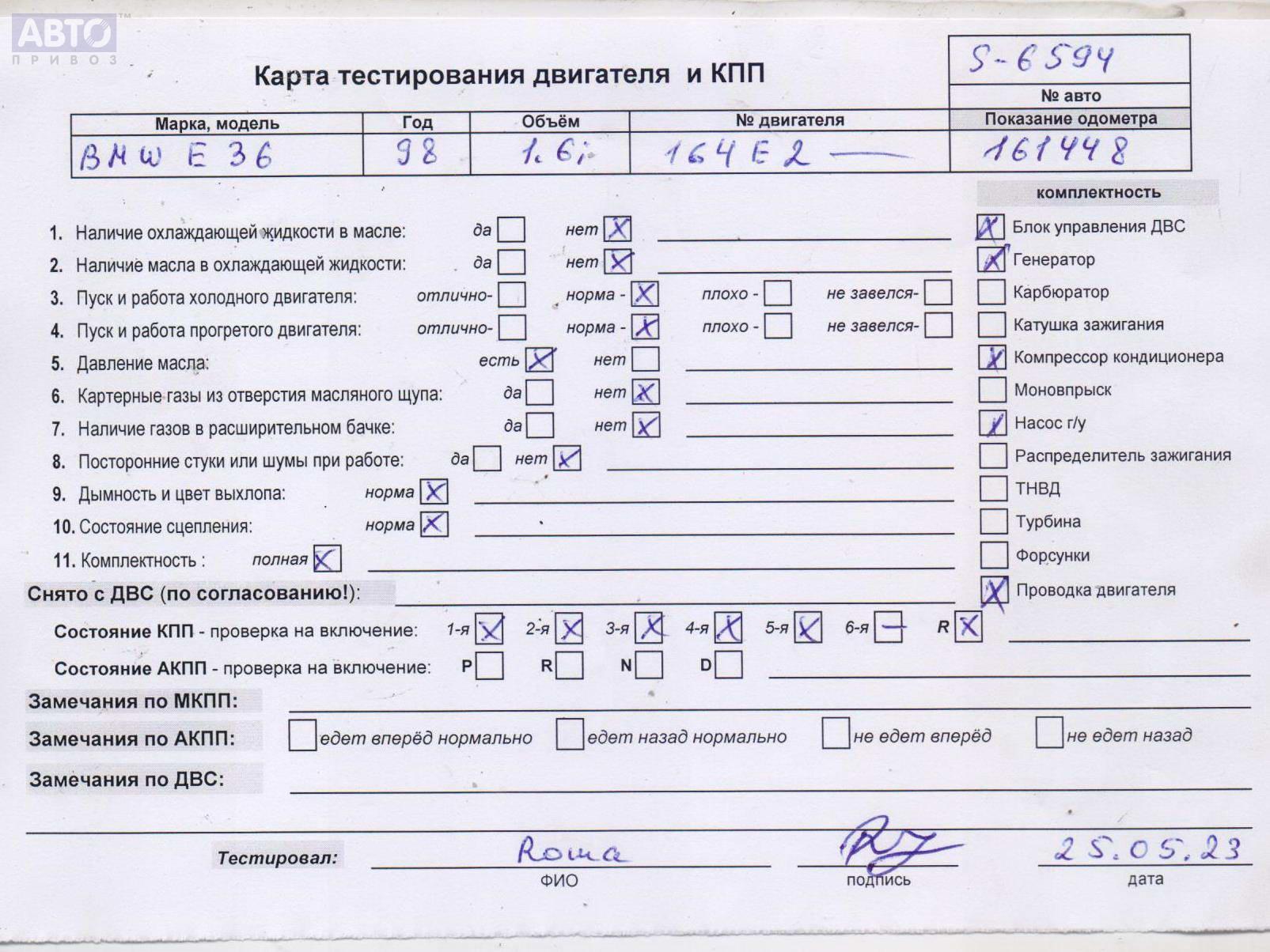 | Автомобиль / VIN: | S6594 WBACG11020KD94585 |