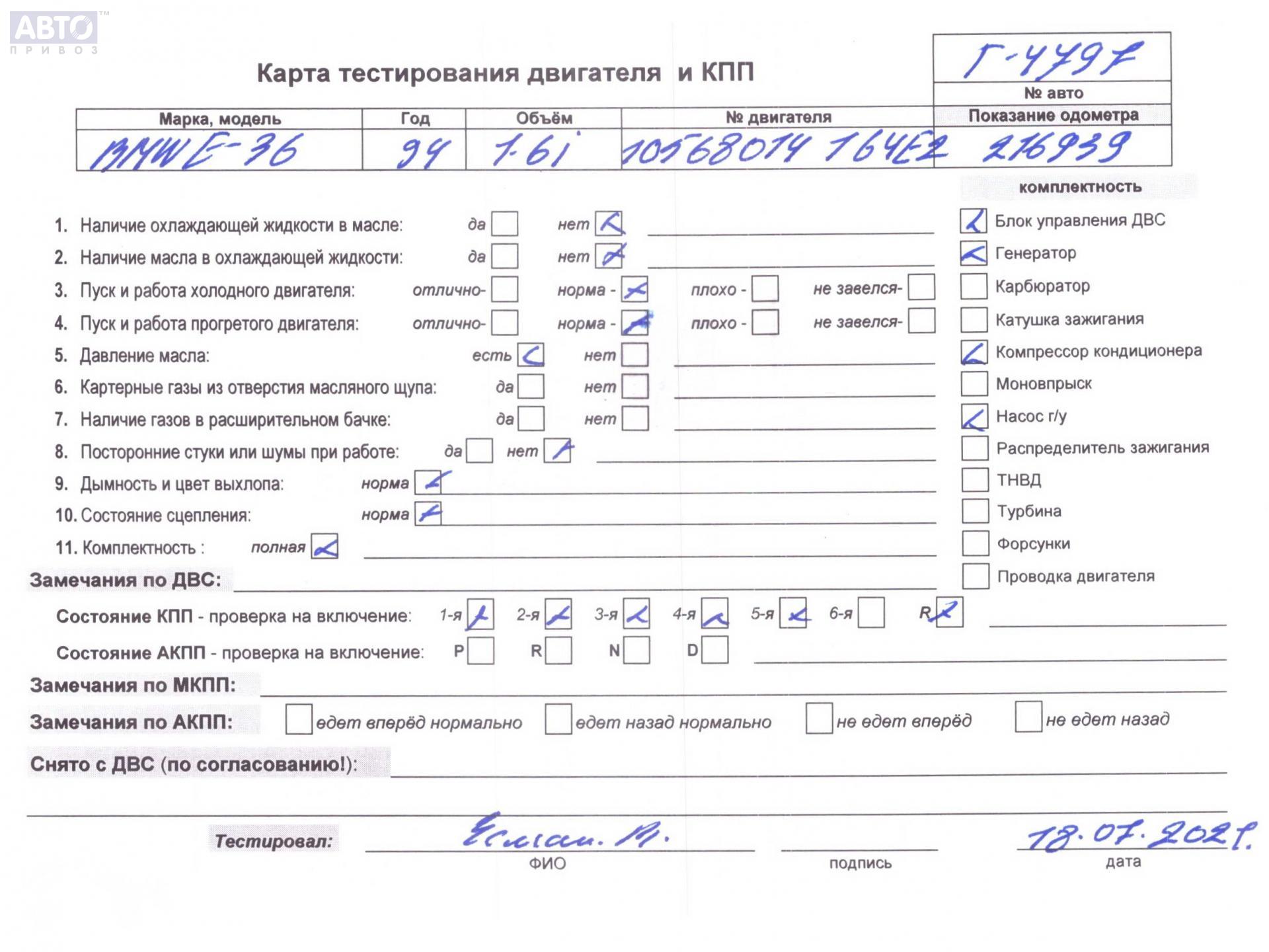 | Марка / Модель / Год: | BMW 3 E36 (1991-2000) 1994 |