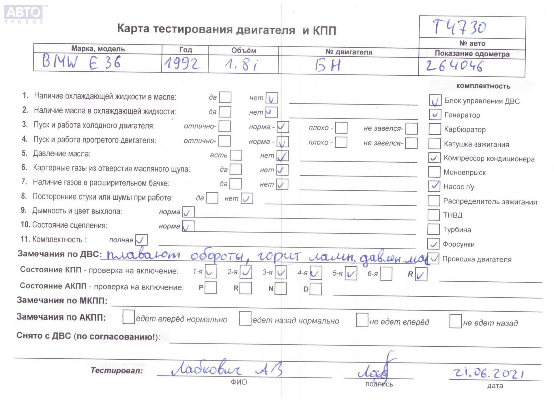 | Автомобиль / VIN: | T4730 WBACA31030EG98987 |