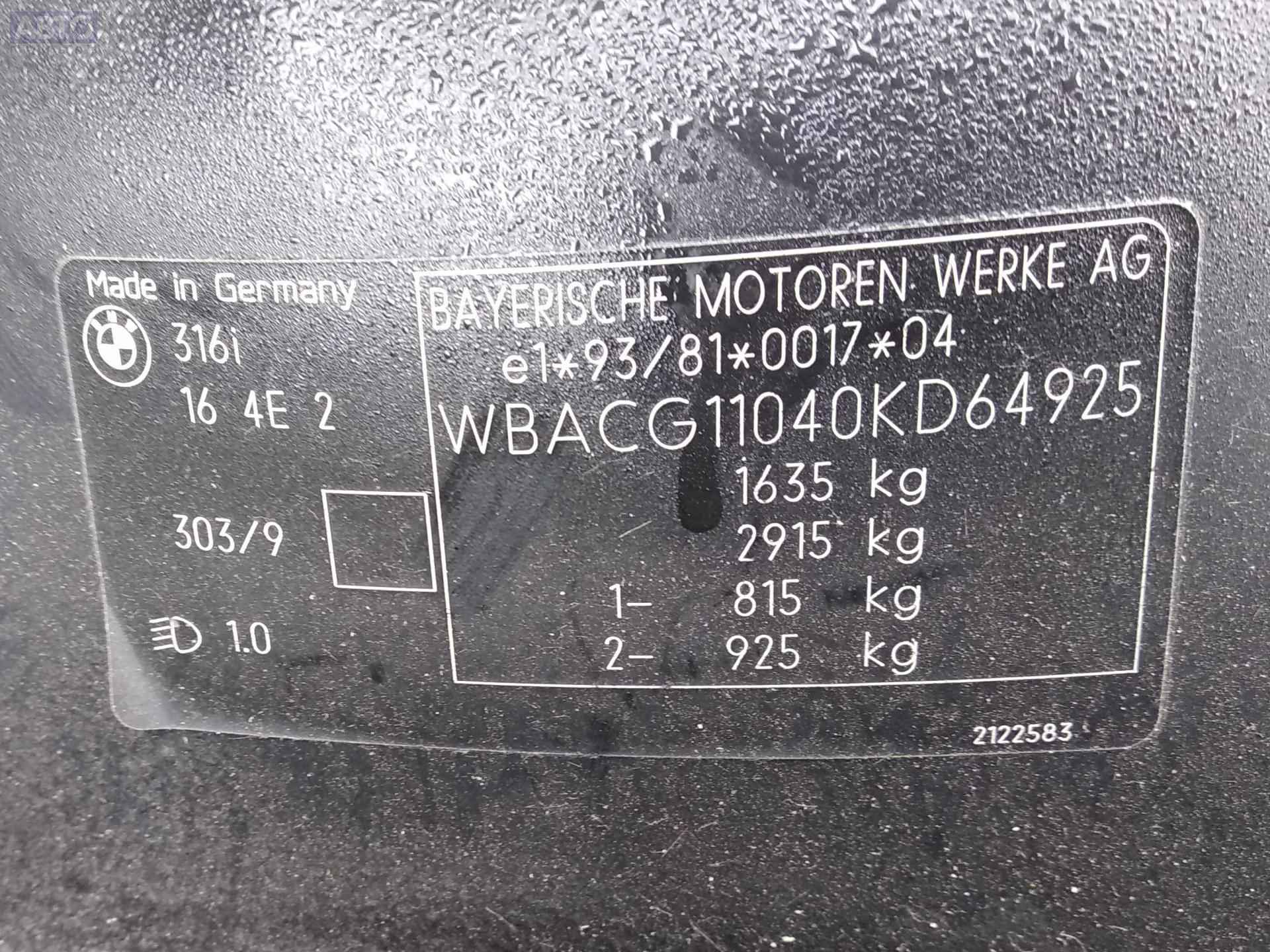 | Автомобиль / VIN: | P0122 WBACG11040KD64925 |