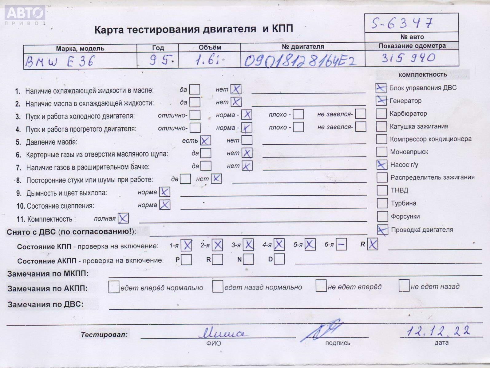 | Автомобиль / VIN: | S6347 WBACG11010KB97410 |