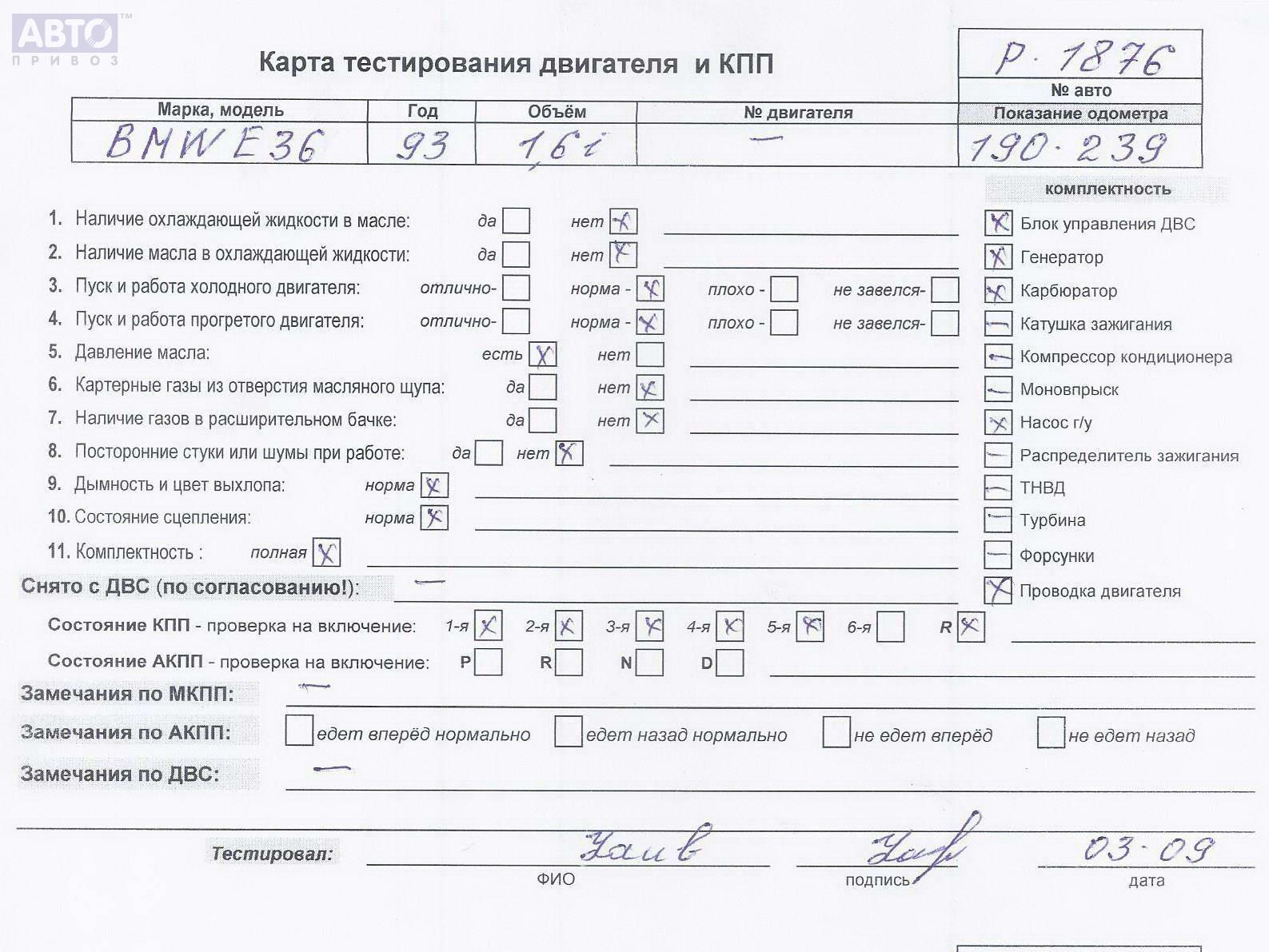 | Автомобиль / VIN: | P1876 WBACA11030AJ40355 |