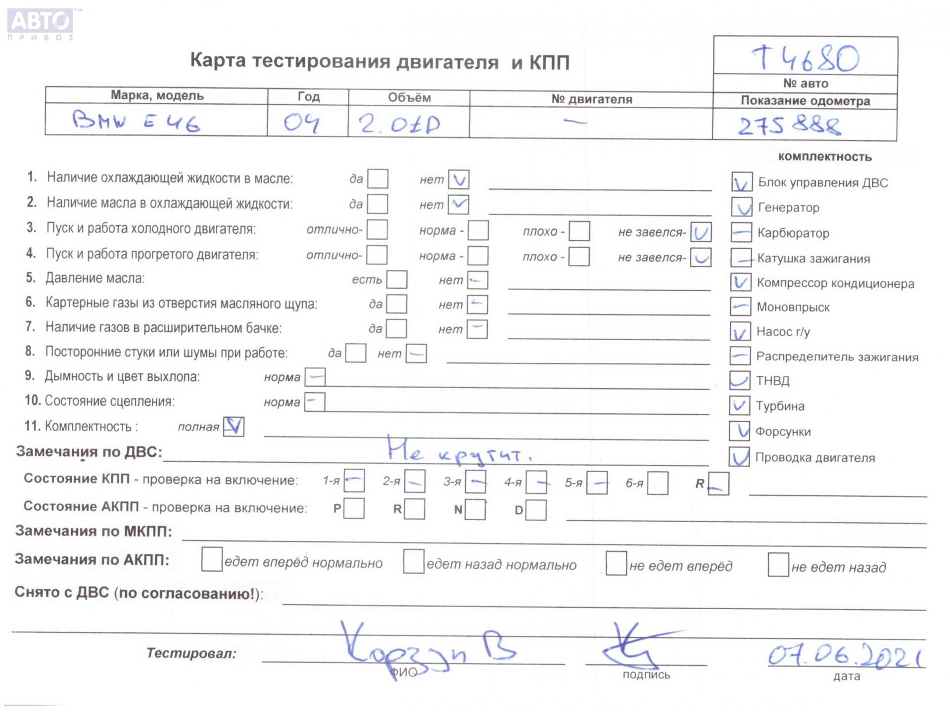 | Автомобиль / VIN: | T4680 WBAAT71030KR22332 |