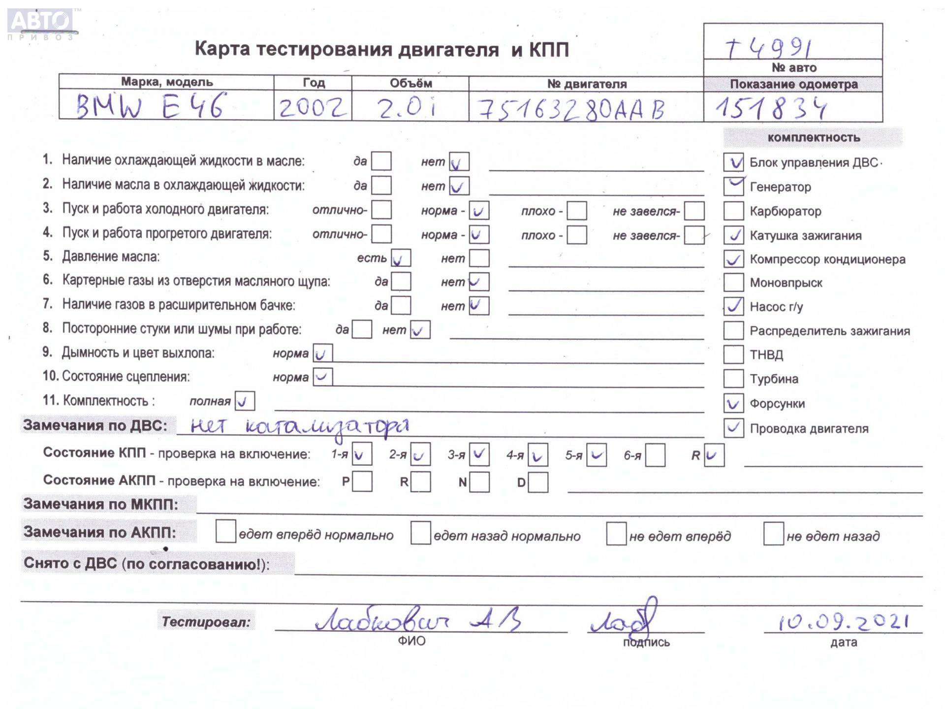 | Марка / Модель / Год: | BMW 3 E46 (1998-2006) 2002 |