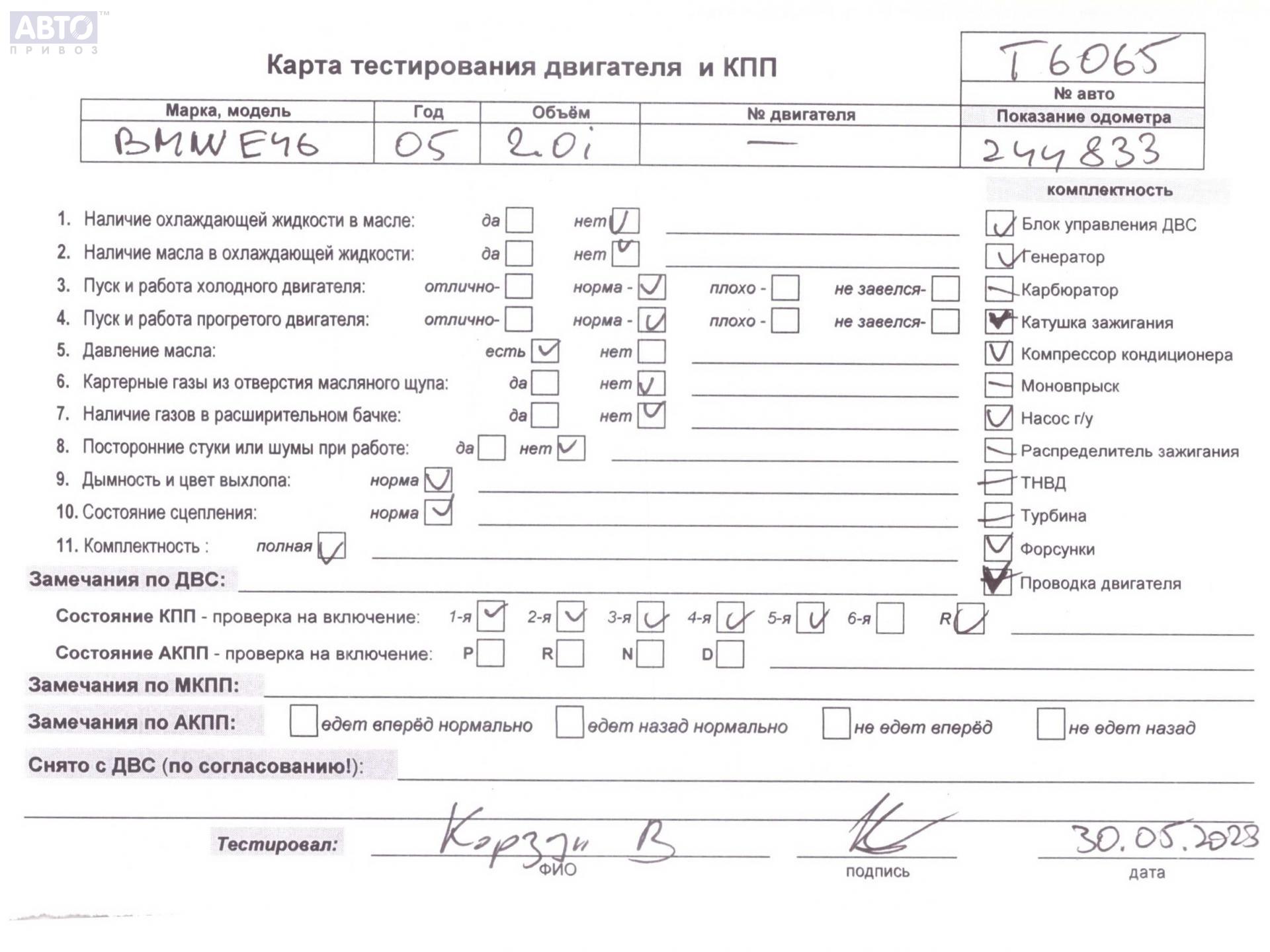 | Автомобиль / VIN: | T6065 WBAEX51050PP73709 |