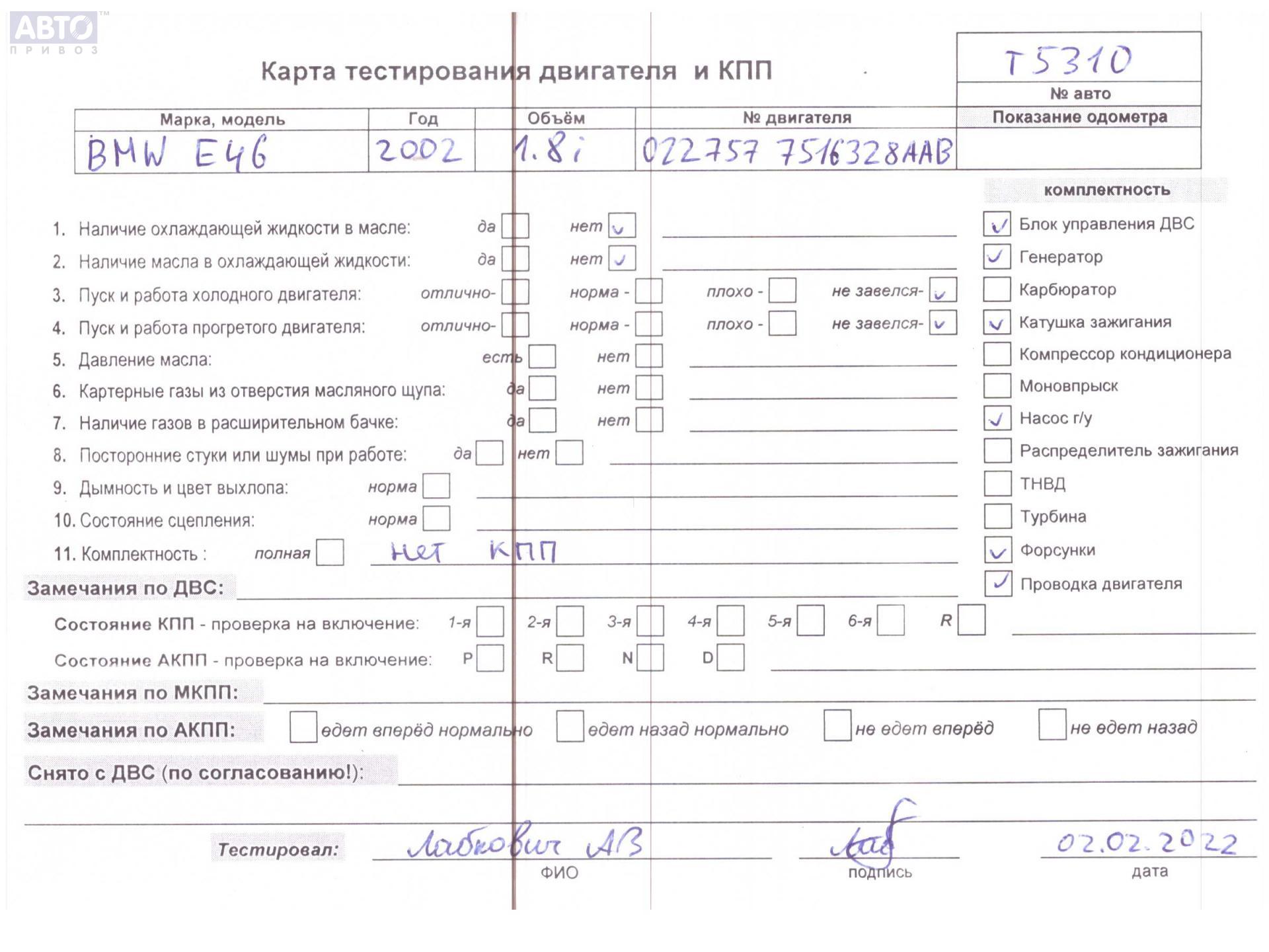 | Марка / Модель / Год: | BMW 3 E46 (1998-2006) 2002 |