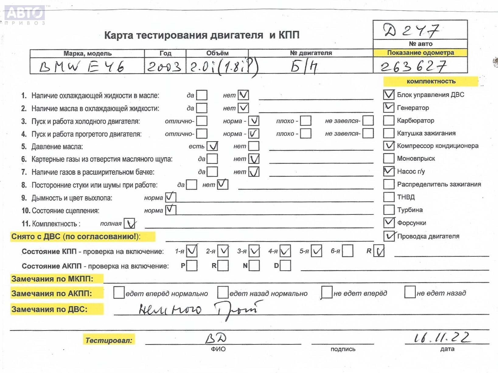| Марка / Модель / Год: | BMW 3 E46 (1998-2006) 2003 |