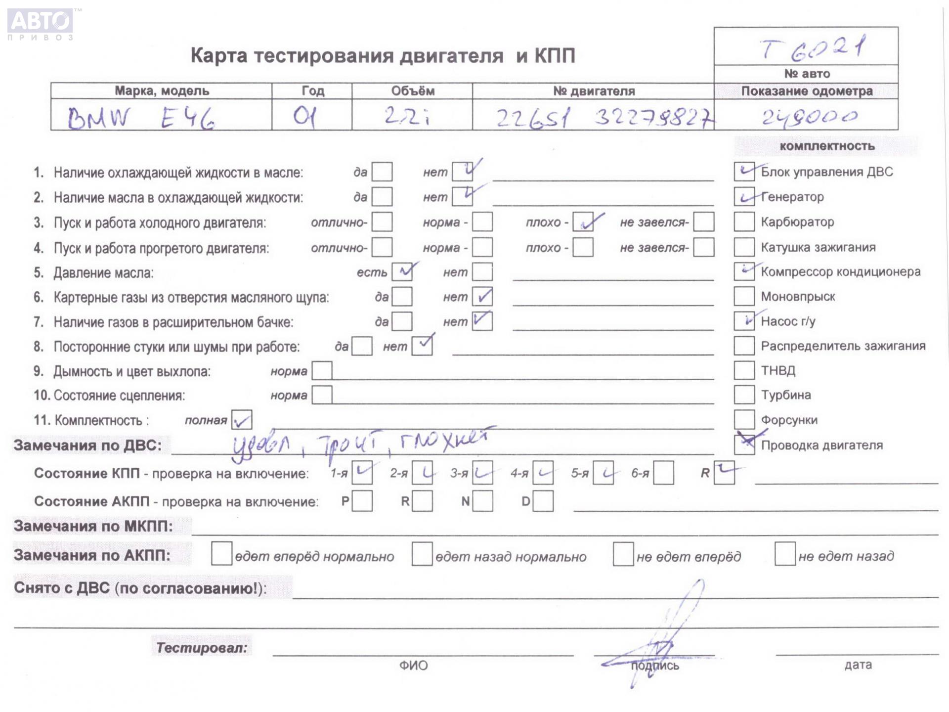 | Автомобиль / VIN: | T6021 WBAAW11020JV14155 |